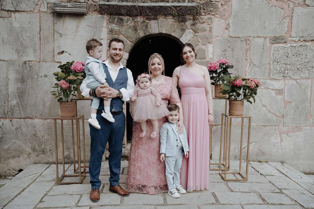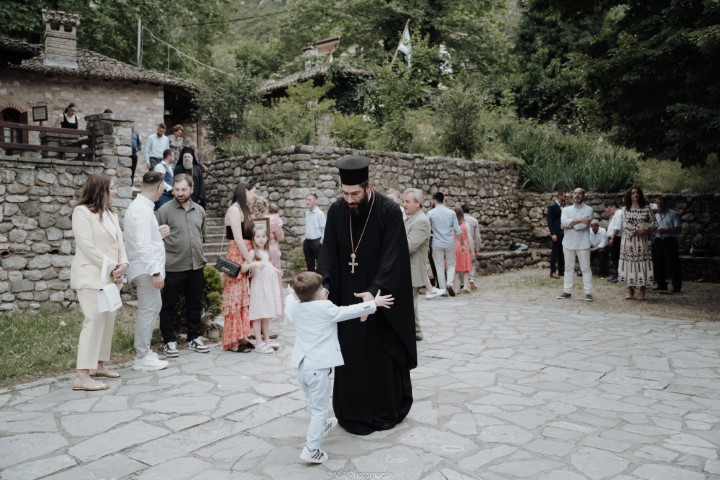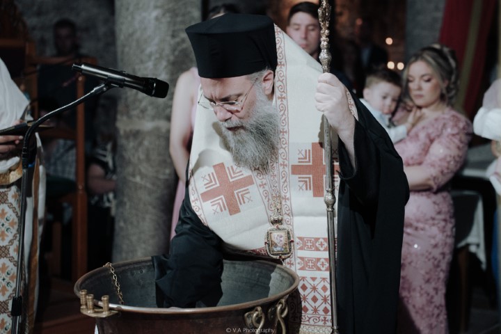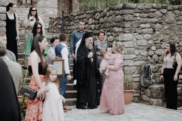 Το Μυστήριο τέλεσε ο Μητροπολίτης Τρίκκης Χρυσόστομος συμπαραστατούμενος από τον Αρχιμανδρίτη Διονύσιο Παπαναστασίου, κληρικό της Μητροπόλεως Θεσσαλονίκης και φίλο του ζευγαριού. Η νονά, Σαλώμη Σωτηριάδου, χάρισε στη μικρή το όνομα Μυρτώ. Ευχές από το trikalavoice.gr, να τους ζήσει.