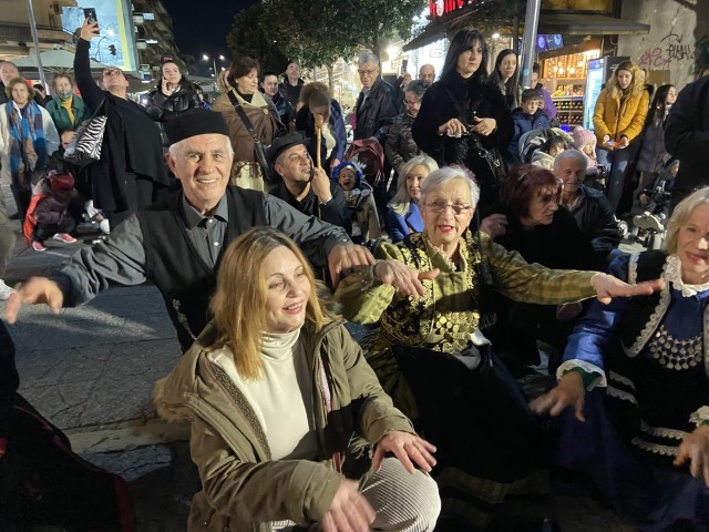 Κέφι, χορός, τραγούδι παραδοσιακό, με το κέντρο των Τρικάλων να μετατρέπεται σε μεγάλη πίστα χορού, καθώς εκατοντάδες τρικαλινοί/ες μετείχαν στο έθιμο αυτό.