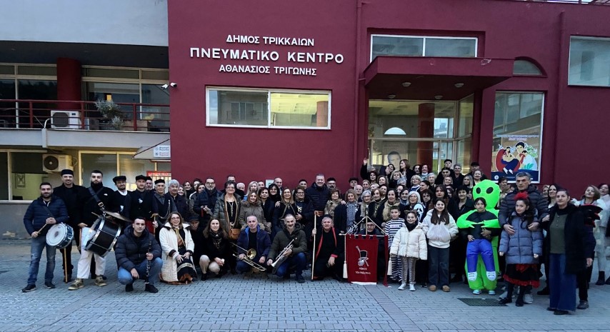 Παρόντες από τον Δήμο Τρικκαίων, ο αντιδήμαρχος Παιδείας, Πολιτισμού, Αθλητισμού Μιχάλης Λάππας και η εντεταλμένη σύμβουλος δημοσίων σχέσεων Εφη Λεβέντη, που “μυήθηκαν”, όπως όλοι οι παριστάμενοι/ες, σε μια διαφορετική Αποκριά.