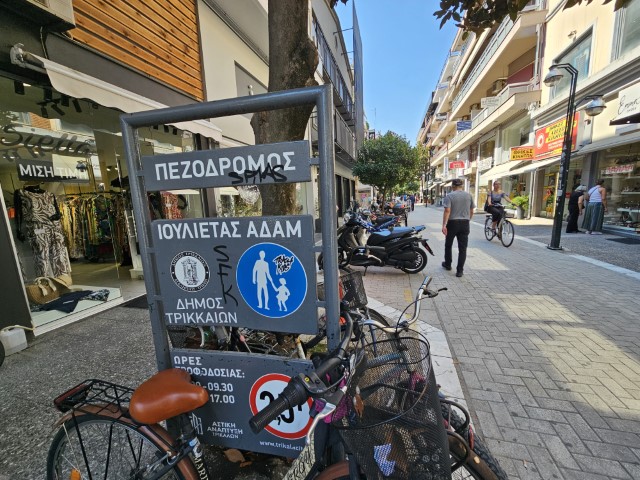 Τα ατυχήματα με ποδήλατα στην πόλη είναι δεκάδες και σχεδόν καθημερινά καθώς κινούνται ανεξέλεγκτα “κόντρα” σε μονόδρομους, σε πεζοδρόμια και πεζόδρομους. Στις αρχές του καλοκαιριού δε ένας νέος άνθρωπος και πυροσβέστης έχασε τη ζωή του οδηγώντας μηχανή και κάνοντας ελιγμό για να αποφύγει ποδήλατο. Υπάρχει γκρίνια από πολλούς για τις κλήσεις που βεβαιώνονται για την κίνηση των ποδηλάτων πάνω στον πεζόδρομο της Ασκληπιού ή της Ιουλιέτας Αδάμ. Η κίνηση όμως σε αυτούς απαγορεύεται ρητά και το βεβαιώνουν και οι πινακίδες που έχει τοποθετήσει ο Δήμος και όπως φαίνεται και στη φωτογραφία του trikalavoice.gr φαίνεται ότι επιτρέπει την κίνηση μόνο πεζών. Ο Δήμος δε ακολουθεί τακτική Πόντιου Πιλάτου αφήνοντας τη Τροχαία να βγάλει τα κάστανα από τη φωτιά… όμως δεν πάει έτσι. Όταν διοικείς πρέπει να “σπας αυγά”. Για να μην θυμίσουμε το παράδειγμα με την απαγόρευση τσιγάρου που ο δήμαρχος τότε και υπουργός σήμερα Δημήτρης Παπαστεργίου πήγε κόντρα σε όλους για να την εφαρμόσει.