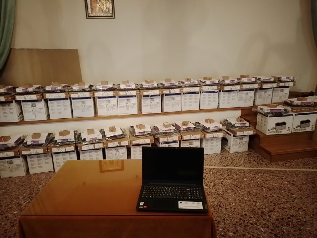 Με την ευλογία του Μακαριωτάτου Αρχιεπισκόπου Αθηνών και Πάσης Ελλάδος Κ.κ. Ιερωνύμου Β’, Προέδρου του ιδρύματος Ποιμαντικής Επιμορφώσεως της Ιεράς Αρχιεπισκοπής Αθηνών, παραδόθηκαν στις 21/2/2024 παρουσία του Σεβασμιωτάτου Μητροπολίτη Σταγών και Μετεώρων κ. Θεοκλήτου στους ιερείς της Ι.Μ Σταγών και Μετεωρων 28 φορητοί υπολογιστές και οι αντίστοιχοι εκτυπωτές από τον Δ/ντη του Ι.Π.Ε. Αρχιμ Θεολόγο Αλεξανδράκη.