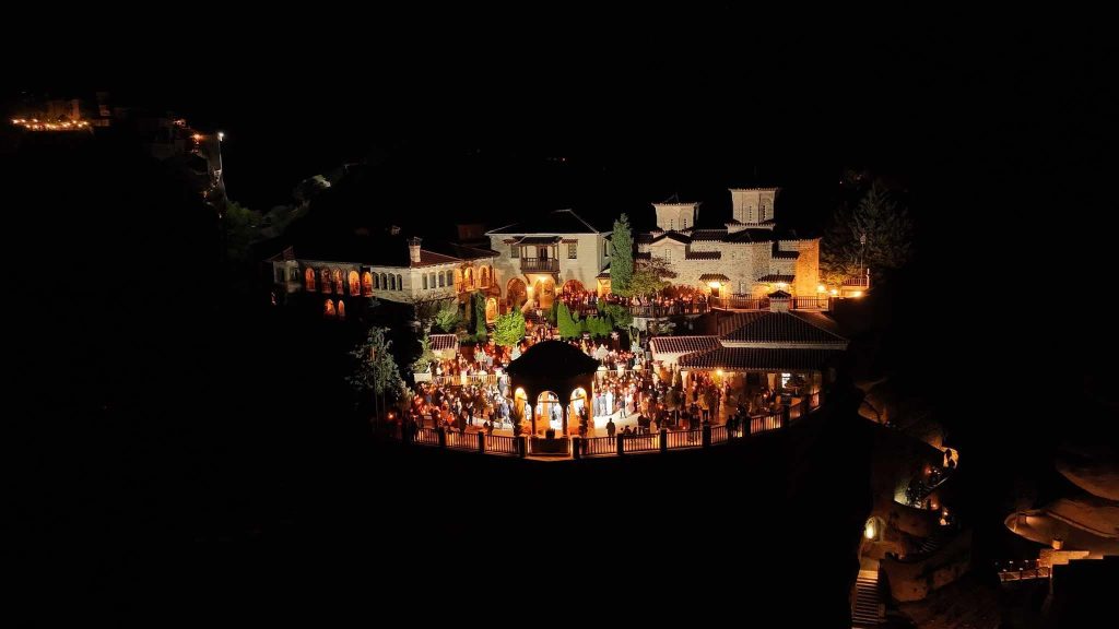 Το “Χριστός Ανέστη” φώτισε το σκότος και δόνησε την ατμόσφαιρα στη σιγαλιά των Αγίων Μετεώρων τα μεσάνυχτα του Μεγάλου Σαββάτου.