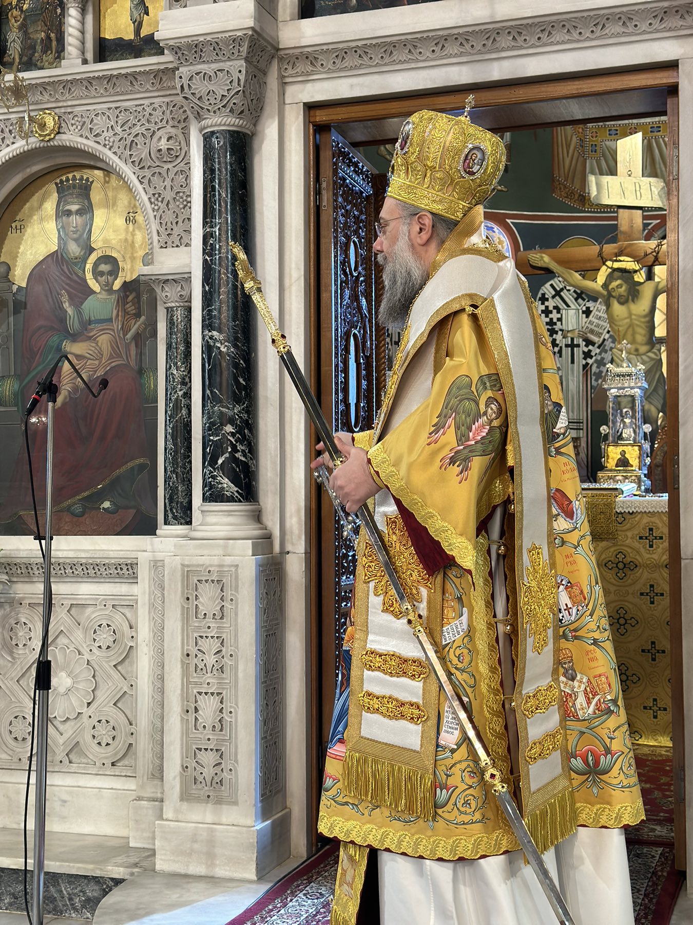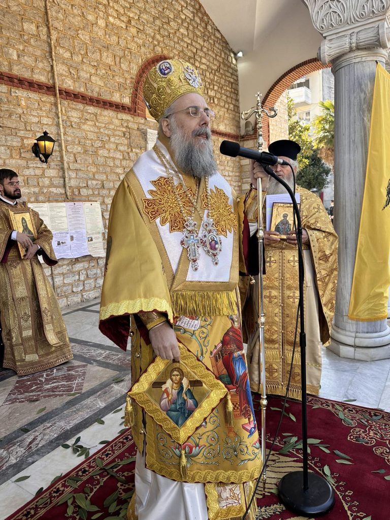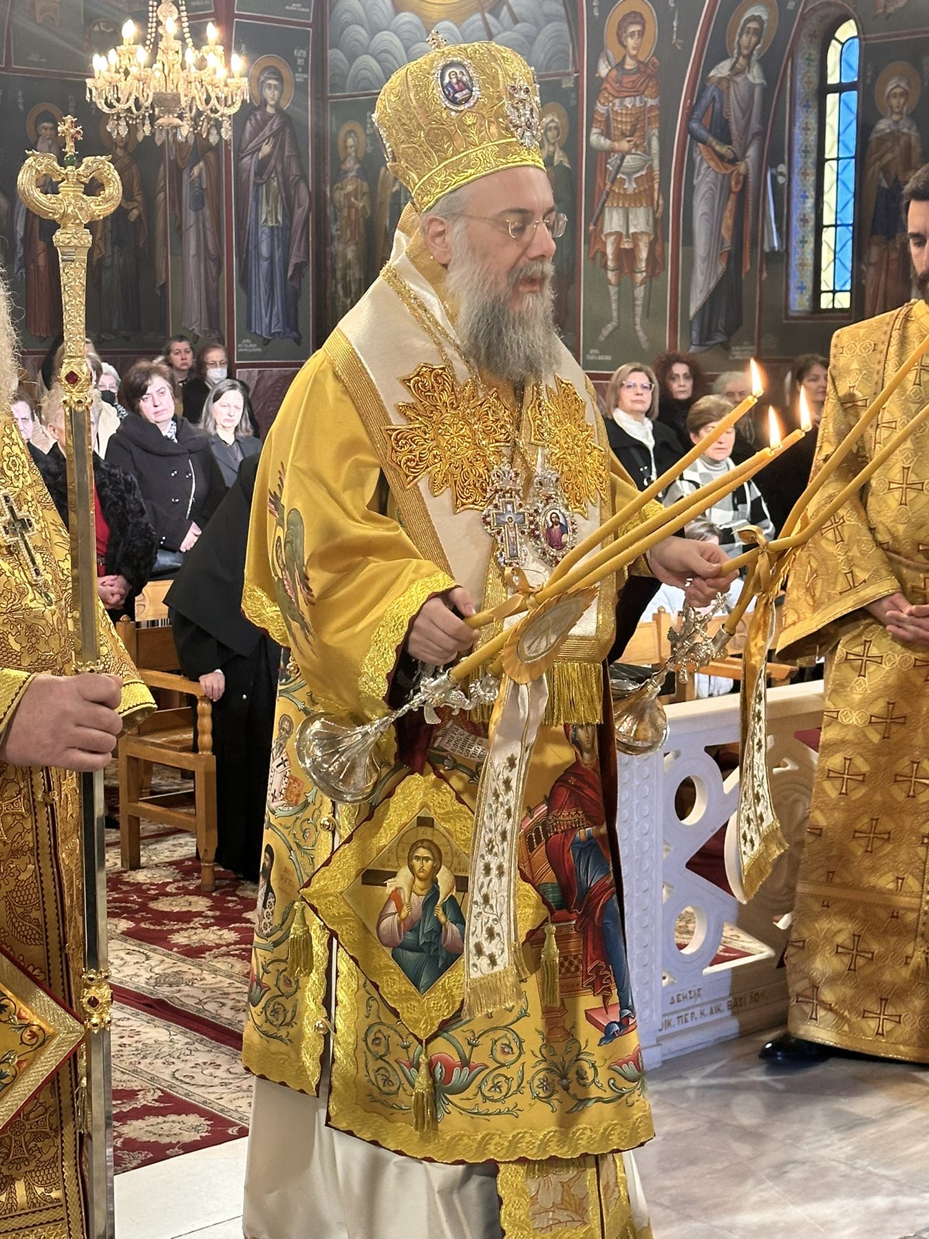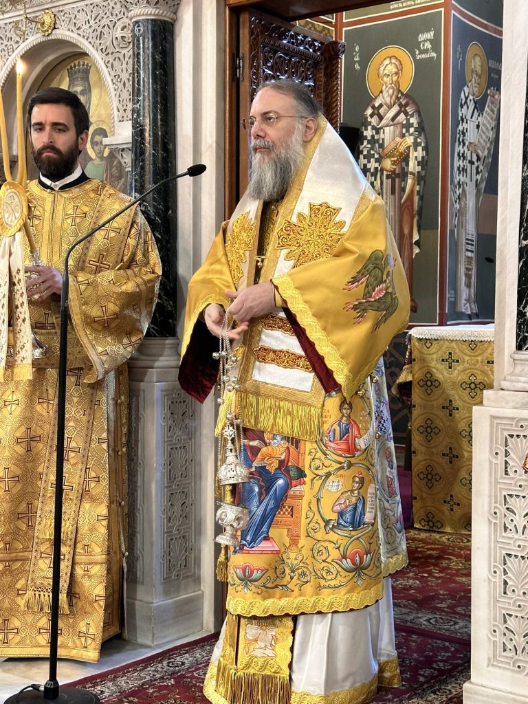 Τη διακονία του λόγου ανέλαβε ο ίδιος ο Σεβασμιώτατος, ο οποίος ομίλησε καταλλήλως προς ωφέλεια όλων και πνευματικό ανεφοδιασμό. Προ της Απολύσεως και συμφώνως προς το Τυπικό της Αγίας μας Εκκλησίας, πραγματοποιήθηκε πέριξ του Ιερού Ναού η Λιτάνευση των Αγίων Εικόνων εις ανάμνηση της αναστηλώσεως των εικόνων το 843 και της θριαμβευτικής νίκης της Ορθοδοξίας και της οριστικής λήξης της μακράς περιόδου της Εικονομαχίας. Εν συνεχεία ο Ποιμενάρχης μας ανέγνωσε το προβλεπόμενο απόσπασμα του υπέρ της Ορθοδοξίας Συνοδικού και ευχήθηκε καταλλήλως προς όλους.