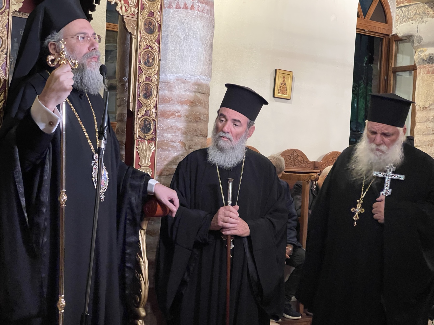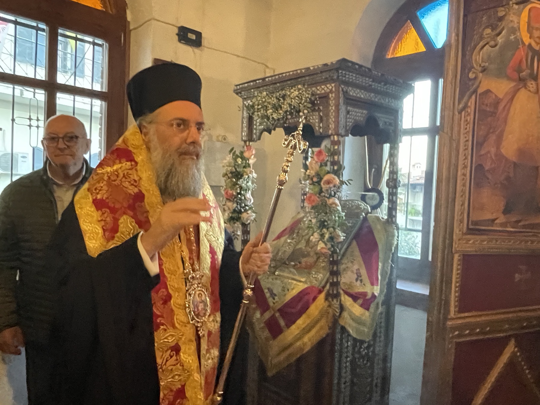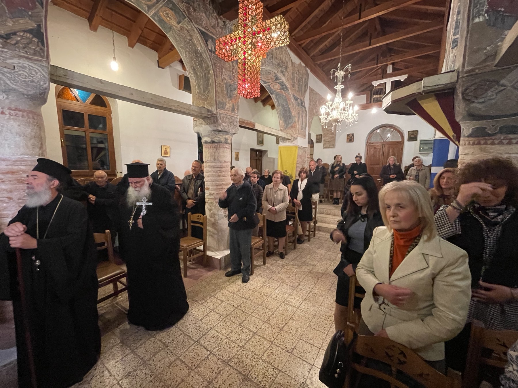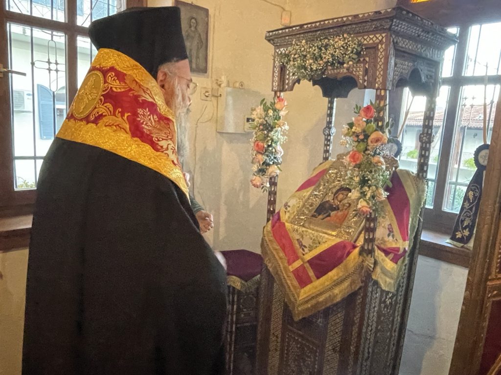 Ο Σεβασμιώτατος απηύθυνε θερμές ευχαριστίες προς τον Πρωτοπρεσβύτερο Ελευθέριο Κορδάμπαλο, Αρχιερατικό Επίτροπο Ριζαριού, διά του οποίου εκομίσθη το σεπτό εικόνισμα από τον Ιερό Ναό Αγίου Χαραλάμπους Ριζαριού. Ακολούθως, τελέσθηκε ο Μέγας Εσπερινός και η Ακολουθία της Μεγάλης Εβδομάδος του Αγίου Δημητρίου, χοροστατούντος του κ. Χρυσοστόμου, ο οποίος ανεφέρθη στη σημασία του Αγίου Δημητρίου και στον συνεορτασμό του με την Υπεραγία Θεοτόκο. Ο Σεβασμιώτατος δεν παρέλειψε να ευχαριστήσει από καρδίας τους ιερείς και τον φιλάγιο λαό του Θεού, ο οποίος με ευλάβεια και θέρμη προστρέχει καθημερινά για να συμμετάσχει στις ιερές ακολουθίες, ευχόμενος προς όλους υγείαν, πνευματικήν πρόοδον και την ευλογία του Θεού.