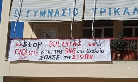 Μαθήτριες της Β΄ τάξης (Ασπρούδη Ευαγγελία, Κοντού Βαλέρια, Μαλέμη Λυδία) με την καθοδήγηση της καθηγήτριας τους, κας Καμπλιώνη Αρετής, δημιούργησαν πανό με μηνύματα κατά του bullying ,το οποίο ανάρτησαν στην πρόσοψη του σχολείου, παρακινώντας τη σχολική κοινότητα να πάρει θέση κατά της βίας στο σχολείο και τα θύματα να «σπάσουν τη σιωπή τους» .
