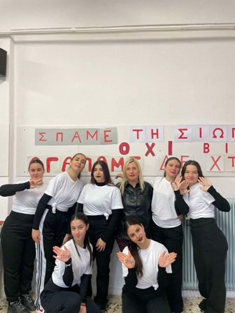 Μια ομάδα μαθητριών της Γ΄ τάξης του γυμνασίου μας ,θεωρώντας ότι οι εντάσεις στο σχολικό περιβάλλον αποτελούν ένα σοβαρό ζήτημα, καθώς επηρεάζουν αρνητικά το κλίμα στο σχολείο, τις επιδόσεις των μαθητών, τις μεταξύ τους σχέσεις και την διαδικασία της διδασκαλίας, με καθοδηγήτρια και χορογράφο την καθηγήτρια των μαθηματικών κυρία Αναγνωστοπούλου Αθανασία ,θέλησε να δείξει την αντίδραση της στη βία και τον εκφοβισμό με τα συνθήματα «Σπάμε τη σιωπή», «Τα χέρια δε χτυπάμε», «Τα χέρια αγαπάμε», « Οχι άλλη βία ». Χόρεψε με τη μουσική του τραγουδιού «Centuries instrumental» –fall out boy, δίνοντας το σύνθημα « stop bullying». Συμμετέχουσες μαθήτριες είναι: