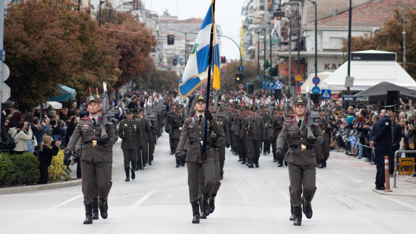 Όπως κατέγραψε το trikalavoice.gr το πρωί της Τρίτης τελέστηκε Δοξολογία στον Μητροπολιτικό Ναό Αγίου Νικολάου και ακολούθως κατάθεση στεφάνων στο Ηρώο της ΣΜΥ. Στις 12 μ. άρχισε η παρέλαση ενώπιον του υπουργού Ψηφιακής Διακυβέρνησης Δημήτρη Παπαστεργίου που εκπροσώπησε την Κυβέρνηση και των αρχών. Δείτε εικόνες:
