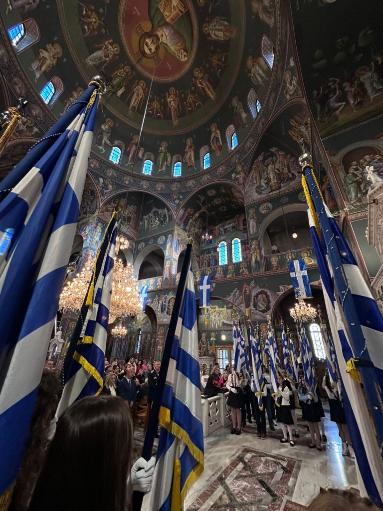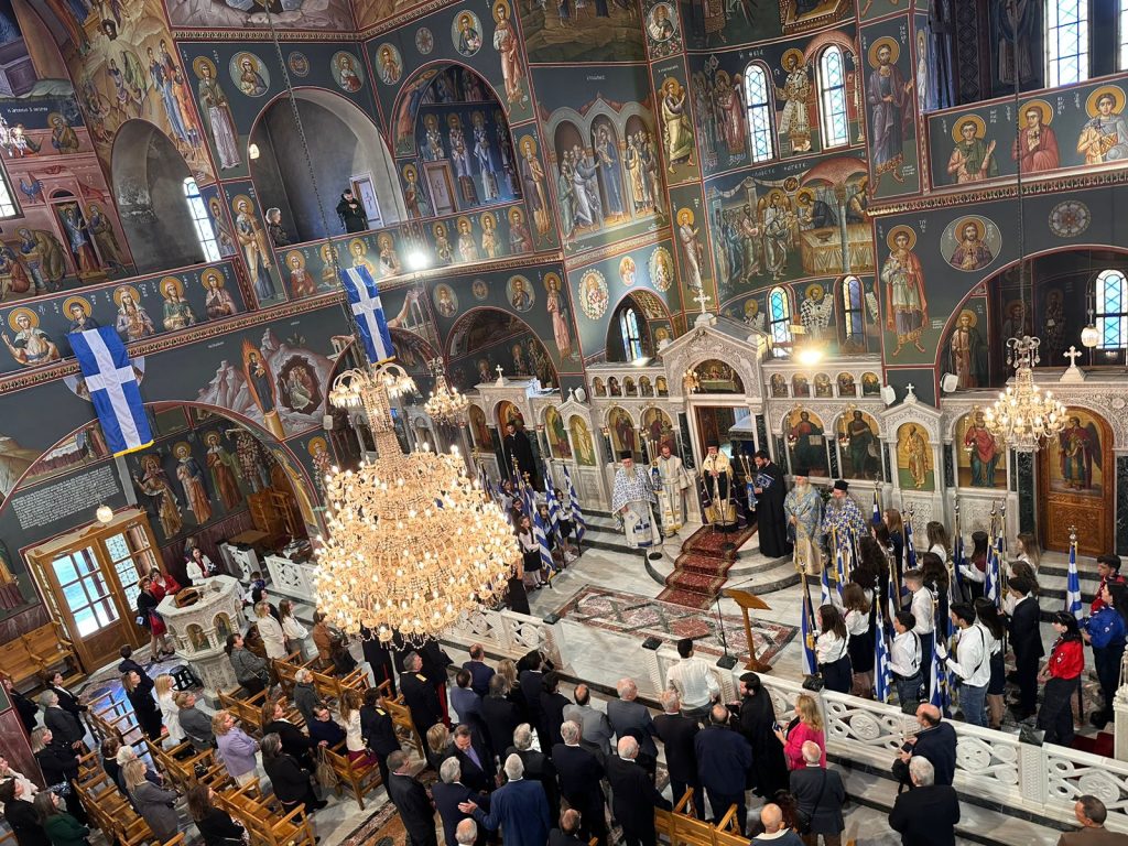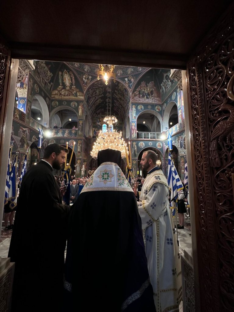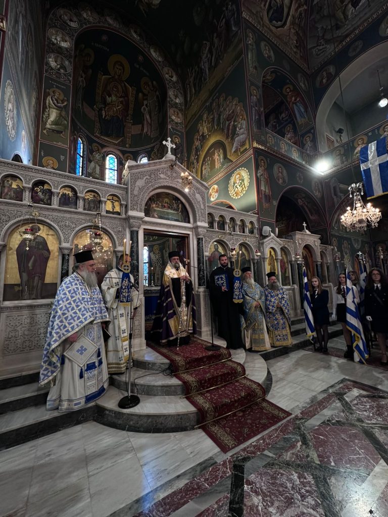 Στον κατάμεστο από μαθητές και μαθήτριες Μητροπολιτικό Ναό Αγίου Νικολάου τελέστηκε το πρωί της 28ης Οκτωβρίου η Δοξολογία επί της εθνικής επετείου.