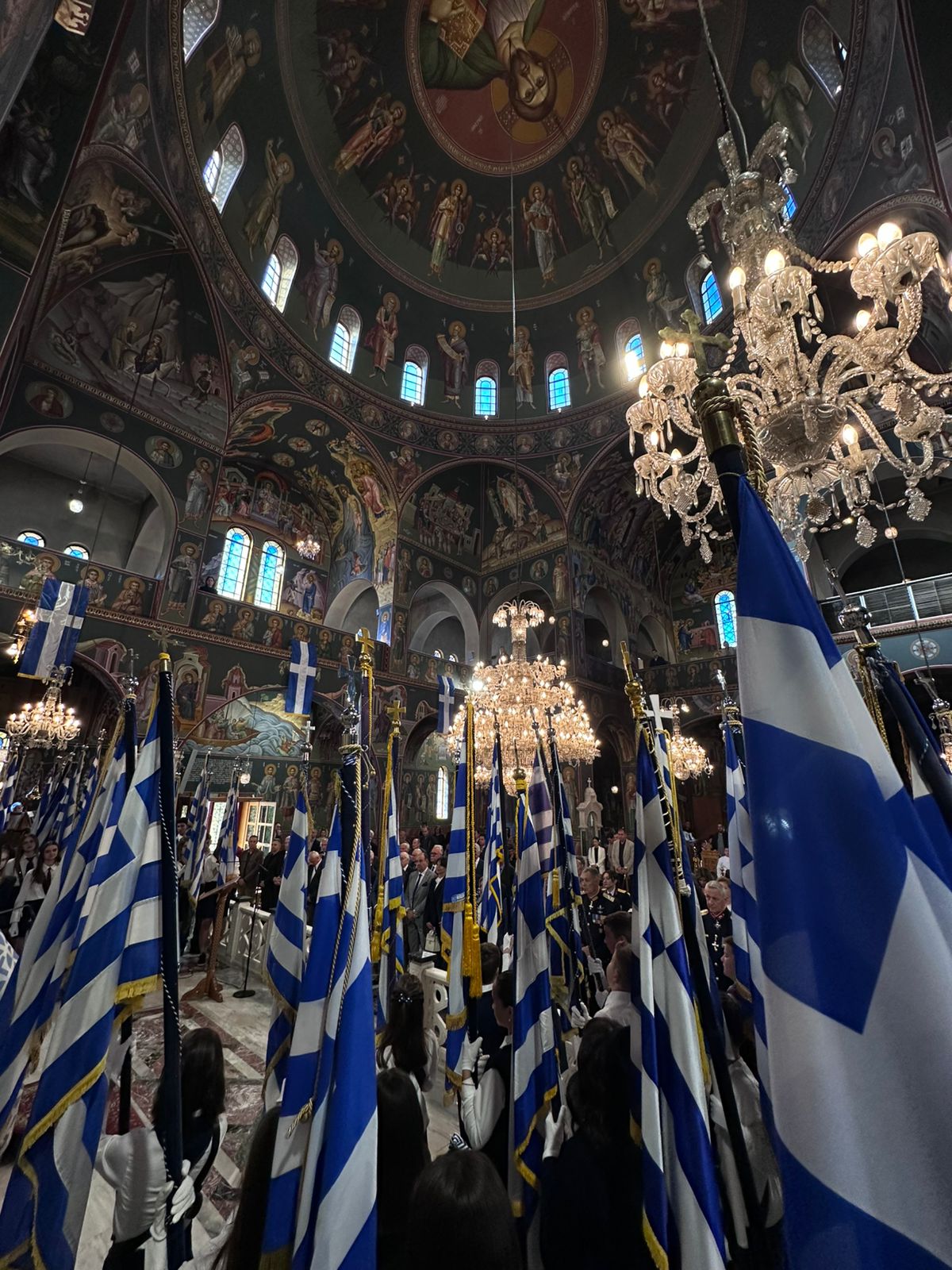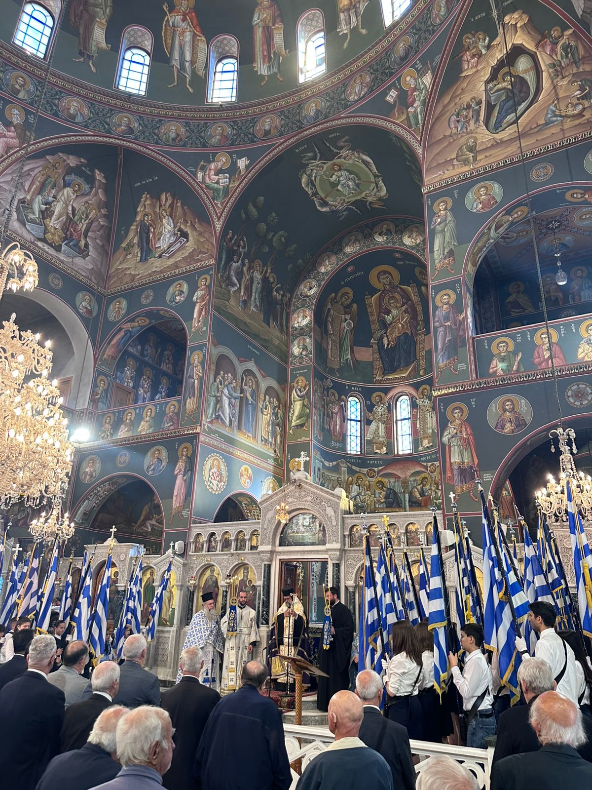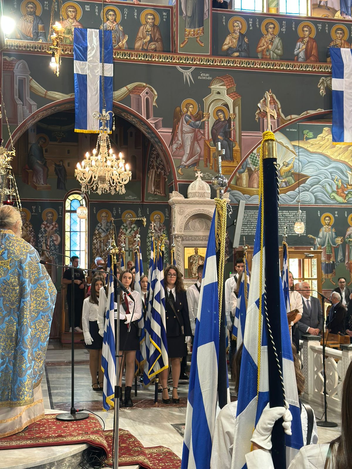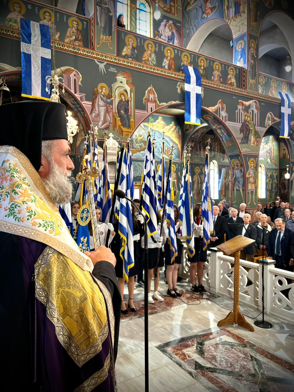 Στον κατάμεστο από μαθητές και μαθήτριες Μητροπολιτικό Ναό Αγίου Νικολάου τελέστηκε το πρωί της 28ης Οκτωβρίου η Δοξολογία επί της εθνικής επετείου.