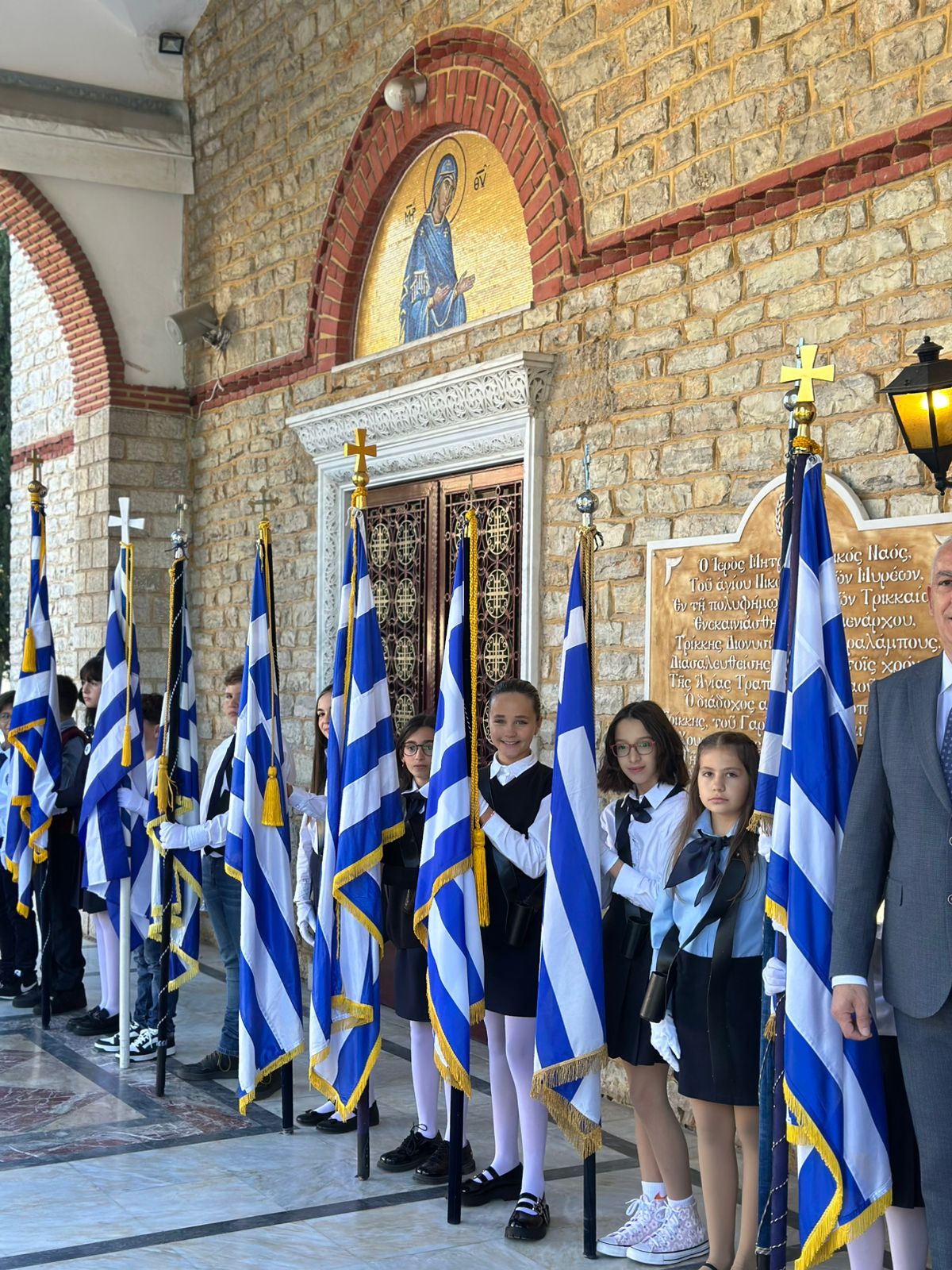 Όπως κατέγραψε το trikalavoice.gr χοροστάτησε ο Επίσκοπος Στρατονικείας Στέφανος και παρέστη η πολιτική και στρατιωτική ηγεσία του τόπου. Δείτε φωτογραφίες και βίντεο με τα παιδιά να ψέλνουν τον εθνικό μας ύμνο: