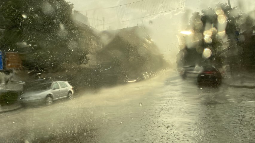 - Μείνετε μέσα και ανάψτε τα προειδοποιητικά φώτα στάσης (φώτα έκτακτης ανάγκης) μέχρι να κοπάσει η καταιγίδα.