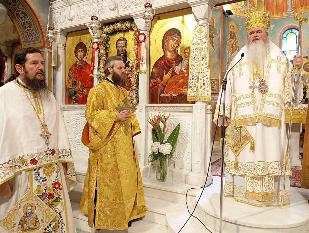 Κατά τη διάρκεια της Θείας Λειτουργίας, ο Σεβασμιώτατος Μητροπολίτης Νέας Κρήνης και Καλαμαριάς κ. Ιουστίνος κήρυξε εμπνευσμένα τον θείο λόγο, αναφερόμενος αφ’ ενός στο Ευαγγελικό ανάγνωσμα της Κυριακής της Σαμαρείτιδος, αφ’ ετέρου δε στον εορταζόμενο Άγιο Βησσαρίωνα, τον μεγάλο αυτό προστάτη και φωτεινό αστέρα της τοπικής μας Εκκλησίας.