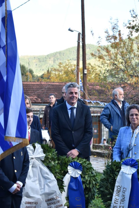 “Εδώ στη Μαρτυρική Καστανιά όπου η Εθνική Επέτειος της 28ης Οκτωβρίου έγραψε τη δική της ιστορία…!! Μια ιστορία βαθιάς συγκίνησης και περηφάνειας. 27 χρόνια από το χτύπημα του τελευταίου κουδουνιού κι όμως… σαν να μην πέρασε μια μέρα. Οι δρόμοι τα σοκάκια το παλιό σχολείο και η εκκλησία