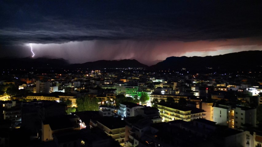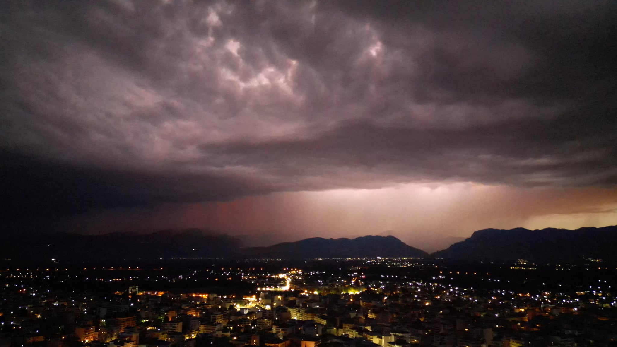 Εντυπωσιακές εικόνες από τη βραδινή καταιγίδα στα Τρίκαλα.