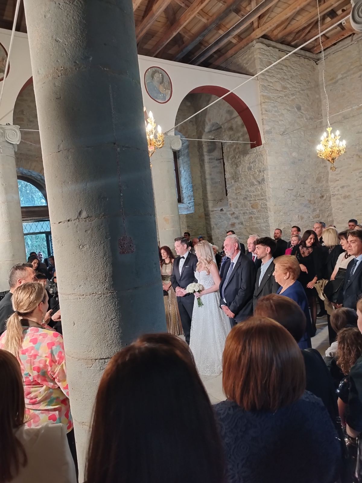 Όπως κατέγραψε το trikalavoice.gr το Μυστήριο τελέστηκε στον Ιερό Ναό Προφήτη Ηλία, στον φερώνυμο λόφο της πόλης των Τρικάλων, με κουμπάρα την βουλεύτρια του ΣΥΡΙΖΑ Μαρίνα Κοντοτόλη. Ακολούθως παρατέθηκε δεξίωση σε γνωστό ξενοδοχείο της περιοχής. Ευχόμαστε βίον ανθόσπαρτο και ανέφελο.