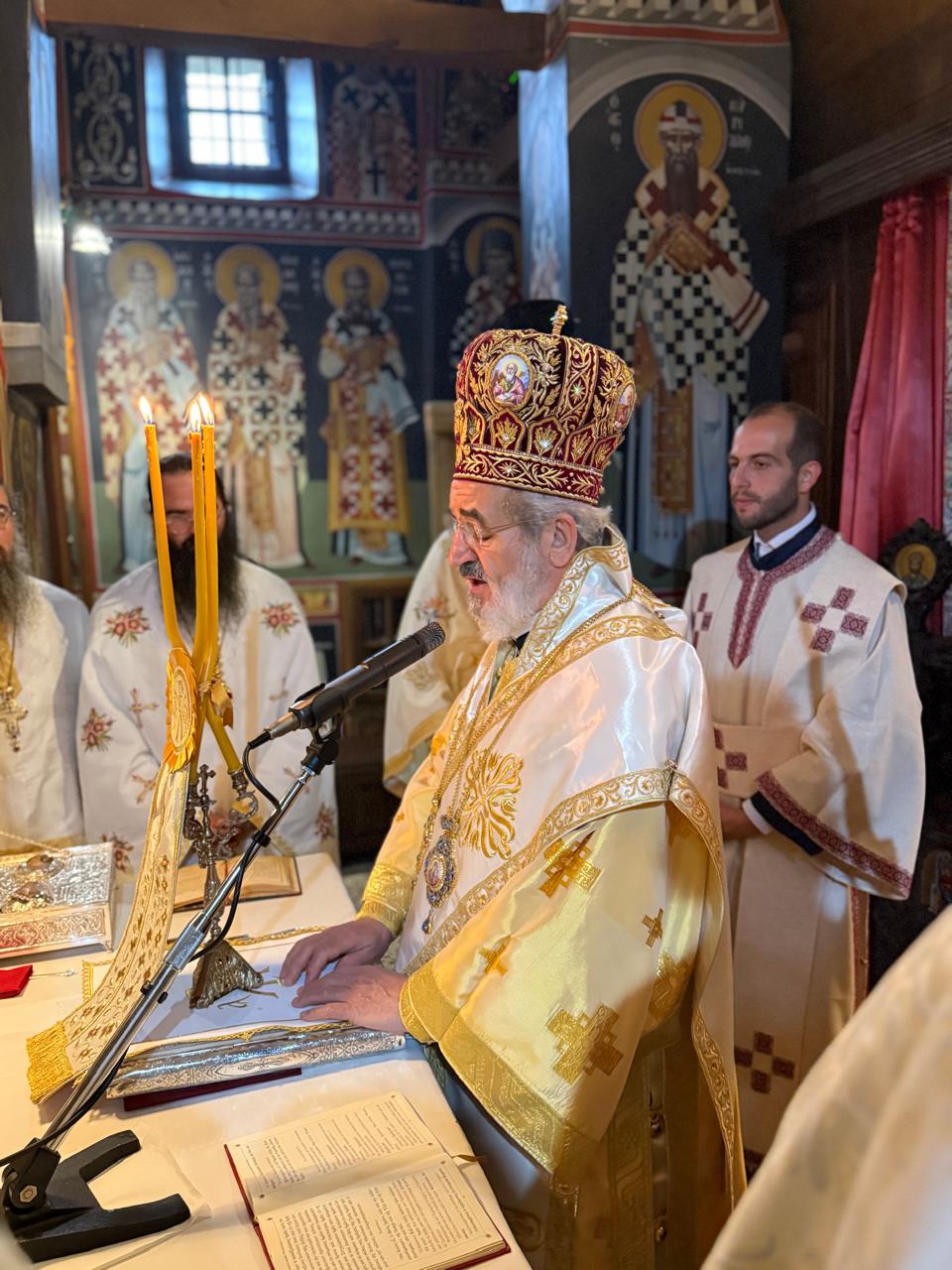 Ο Σεβασμιώτατος, στο κήρυγμά του, αναφέρθηκε με θέρμη και σεβασμό στο πρόσωπο του μεγάλου Αγίου Ιωάννου του Θεολόγου, υπογραμμίζοντας τη θεολογική του προσφορά και την πνευματική του ακτινοβολία στην Εκκλησία. Ιδιαίτερη μνεία έκανε στη Γερόντισσα μοναχή Ισιδώρα, κατα σάρκα κόρη του νέου Αγίου Δημητρίου Γκαγκαστάθη, εκφράζοντας την ευγνωμοσύνη του για την προσφορά της στην αδελφότητα και στην αναστήλωση της Ιεράς Μονής. Την κυριώνυμη ημέρα της εορτής, προεξήρχε της Αρχιερατικής Θείας Λειτουργίας ο Σεβασμιώτατος, συλλειτουργούντος του Γενικού Αρχιερατικού Επιτρόπου της Ιεράς Μητροπόλεως Τρίκκης, Πρωτοπρεσβυτέρου Λάμπρου Κολώνα. Στο τέλος της Θείας Λειτουργίας, ο Σεβασμιώτατος ευχαρίστησε όλους τους παρευρισκόμενους, καθώς και τους ευσεβείς προσκυνητές από την ευρύτερη περιοχή, και ιδιαιτέρως τον Σεβασμιώτατο Μητροπολίτη Τρίκκης, Γαρδικίου και Πύλης κ.κ. Χρυσόστομο, για την ευλογία και την άδεια να προεξάρχει των ιερών ακολουθιών στην ιστορική Ιερά Μονή Αγίου Ιωάννου του Θεολόγου Ζάρκου.