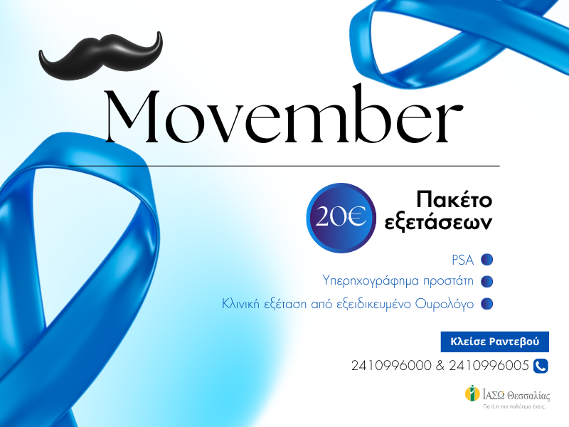 Το ΙΑΣΩ Θεσσαλίας υποδέχεται το Νοέμβριο, στηρίζοντας το κίνημα #Movember* και ενώνει δυνάμεις με την παγκόσμια πρωτοβουλία για την ανδρική υγεία.