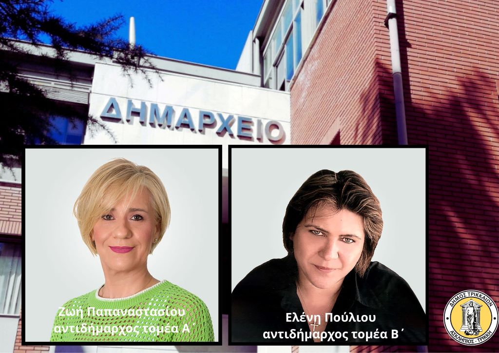 Δύο νέες αντιδήμαρχοι αναλαμβάνουν τους τομείς Α΄ και Β΄ του Δήμου Τρικκαίων., σύμφωνα με τη σχετική απόφαση του Δημάρχου Τρικκαίων Νίκου Σακκά. πρόκειται για τους τομείς, στους οποίους έχει χωριστεί ο Δήμος Τρικκαίων, προκειμένου να διευθετούνται ταχύτερα και καλύτερα ζητήματα που αφορούν σε παρεμβάσεις και σε έργα στα χωριά του Δήμου.