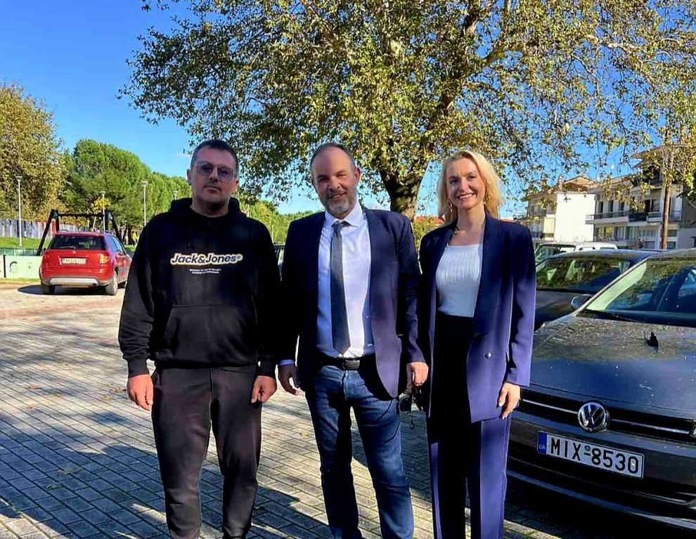 Διακρίνεται στη φωτό του trikalavoice.gr με τους νομικούς του συμβούλους, Κωστή Τσόγκα και Ευαγγελία Σκούρου, του γραφείου “Τσόγκας και Συνεργάτες”.