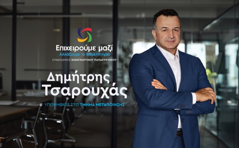 Με γνώσεις και εμπειρία, ένας από τους πλέον καταξιωμένους επαγγελματίες των Τρικάλων, ο Δημήτρης Τσαρουχάς, διεκδικεί την ψήφο των συναδέλφων του στις επερχόμενες Επιμελητηριακές εκλογές, όντας υποψήφιος στο Τμήμα Μεταποίησης με τον συνδυασμό του Κωνσταντίνου Παπαευθυμίου «Επιχειρούμε μαζί».