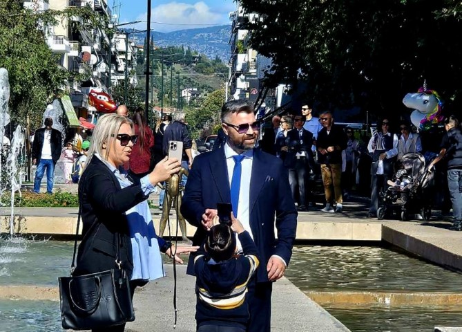 Έγινε ο συγκυρηναίος του στο πολυσχιδές έργο που εκείνος επιτελεί στη Μητρόπολή μας, πάντα δίπλα του σε κάθε δυσκολία. Στη φωτογραφία διακρίνεται με τη σύζυγό του Ντανιέλα και το παιδάκι τους λίγα μέτρα από την εξέδρα των επισήμων κατά την παρέλαση. Λίγες μονάχα στιγμές ξεγνοιασιάς…