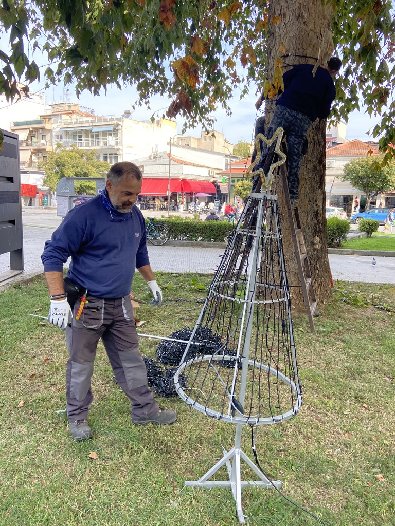 Το τμήμα Δημοτικού Φωτισμού (Δ/νση Ανταποδοτικών Υπηρεσιών) έχει αναλάβει όλο το βάρος του φωτισμού στην κεντρική πλατεία, στον Ληθαίο ποταμό, στις γέφυρες, στα δέντρα, σε κεντρικά σημεία, στα χωριά, σε δρόμους, με στόχο μια πιο γιορτινή πόλη. Για τον λόγο αυτόν ο Δήμαρχος Τρικκαίων Νίκος Σακκάς επισκέφθηκε το πρωί της Δευτέρας 13 Οκτωβρίου 2025 τους εργαζόμενους του τμήματος, διαπιστώνοντας, την πρόοδο του στολισμού. Μάλιστα ο κ. Σακκάς επεσήμανε ότι η δημοτική αρχή στοχεύει στο να αυξηθούν οι παρεμβάσεις με περισσότερο στολισμό σε περισσότερα σημεία της πόλης και σε χωριά. Εδωσε έμφαση στον φωτισμό στις κεντρικές οδούς και στην κεντρική πλατεία, ενώ ευχαρίστησε συνολικά τους 6 ηλεκτρολόγους και τους 2 οδηγούς του συγκεκριμένου τμήματος, που έχουν επιφορτιστεί το μεγαλύτερο βάρος του στολισμού των Τρικάλων, για να υποδεχθούν τους εκατοντάδες χιλιάδες επισκέπτες.