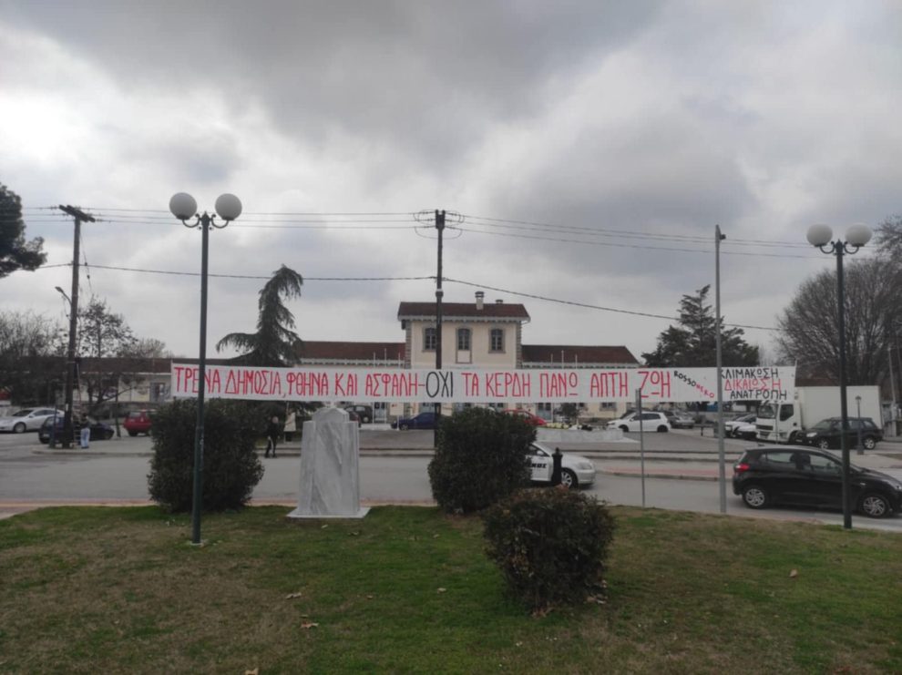 Ένα εντυπωσιακό πανό 40 μέτρων έξω από τον Σιδηροδρομικό Σταθμό των Τρικάλων τοποθέτησε ο Κοινωνικός Αυτοδιαχειριζόμενος Χώρος Rossonero, σήμερα το πρωί ενόψει της αυριανής θλιβερής επετείου και τη συμπλήρωση δύο χρόνων από το έγκλημα των Τεμπών.