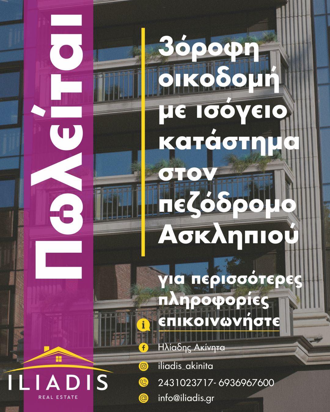 Ανακατατάξεις στη τοπική αγορά με πωλητήριο σε 3όροφη οικοδομή, με ισόγειο κατάστημα, στον πεζόδρομο της Ασκληπιού.
