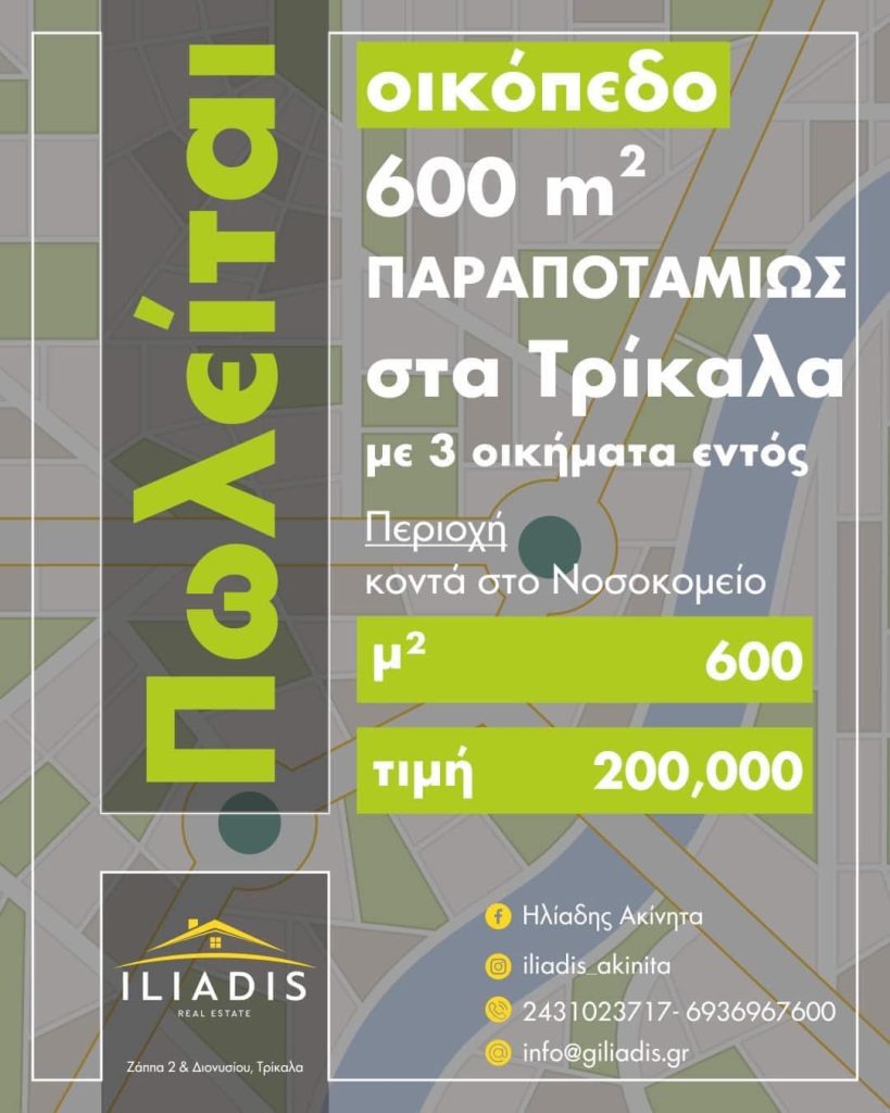 Πωλείται παραποτάμιο οικόπεδο 600 τ.μ. με τρία κτίσματα μέσα. Τιμή: 200.000 €.