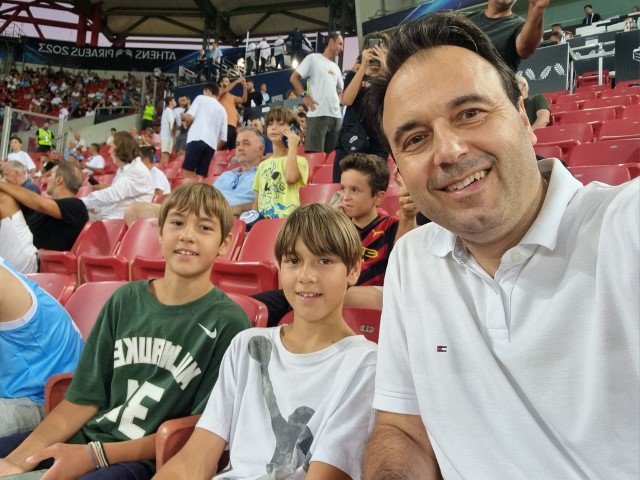 Μεγάλη αγάπη του η Ένωση, η ΑΕΚ: «Είμαι ΑΕΚτζής και δεν το κρύβω! Έχω εισιτήριο διαρκείας, προσπαθώ όσο προλαβαίνω να πηγαίνω στους αγώνες μαζί και με τα παιδιά μου. Από μικρός παρακολουθούσα την ομάδα και οι αγώνες της ήταν πάντα μια μεγάλη χαρά . Σίγουρα πριν ξεκινήσουν… Ενίοτε και μετά το 90′! Είναι κάτι που με συνδέει με φίλους και παιδικές αναμνήσεις». « Πιστεύω στην ευγενή άμιλλα, ότι ο αθλητισμός πρέπει να ενώνει. Στη λογική αυτή, το μέτρο για την ψηφιακή ταυτοποίηση των εισιτηρίων μέσω του Gov.gr Wallet ήταν μια σημαντική κίνηση , ώστε να ξαναγίνουν τα γήπεδα χώροι αθλητισμού και χαράς για όλους, απαλλαγμένα από την οπαδική βία. θέλουμε οι οικογένειες να μπορούν να πηγαίνουν χωρίς φόβο στους αγώνες», ανέφερε.
