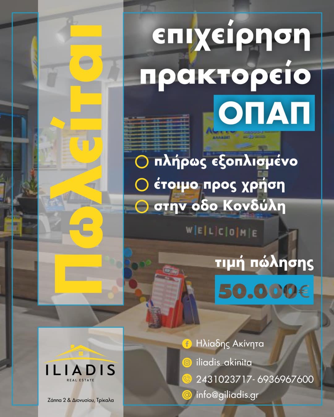 Πωλείται προς 50.000 € πρακτορείο ΟΠΑΠ στα Τρίκαλα.