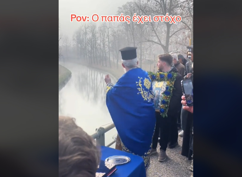 Viral έγινε βιντεάκι που αναρτήθηκε στο Tik Tok από τον Αγιασμό των Υδάτων στη γέφυρα Γκίκα, όπου και ο Σταυρός φεύγει από τα χέρια του παπα Γιώργη Θανάσουλα και αντί για το ποτάμι πάει σε κεφάλι πιστού (… ευτυχώς χωρίς τραυματισμούς).