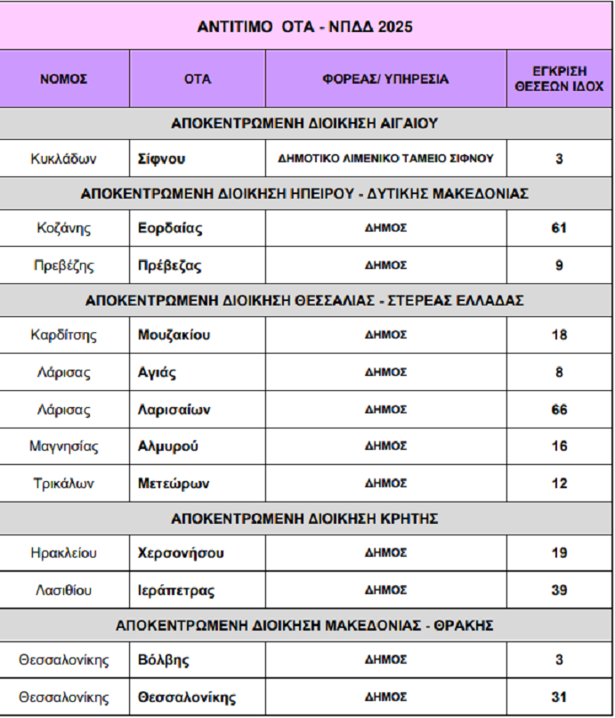 Διαβάστε παρακάτω στους πίνακες την κατανομή στους Δήμους: