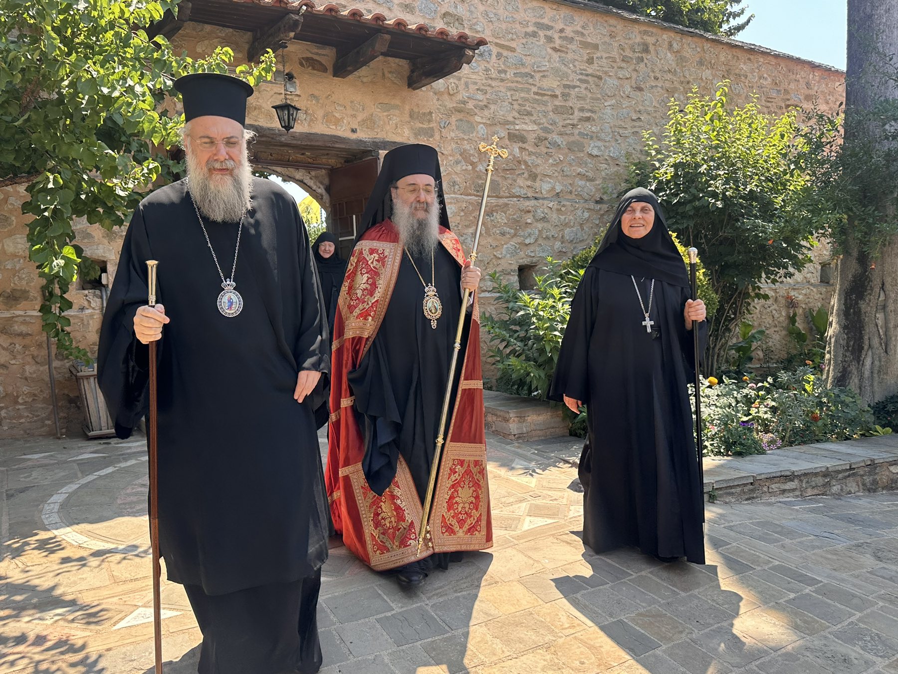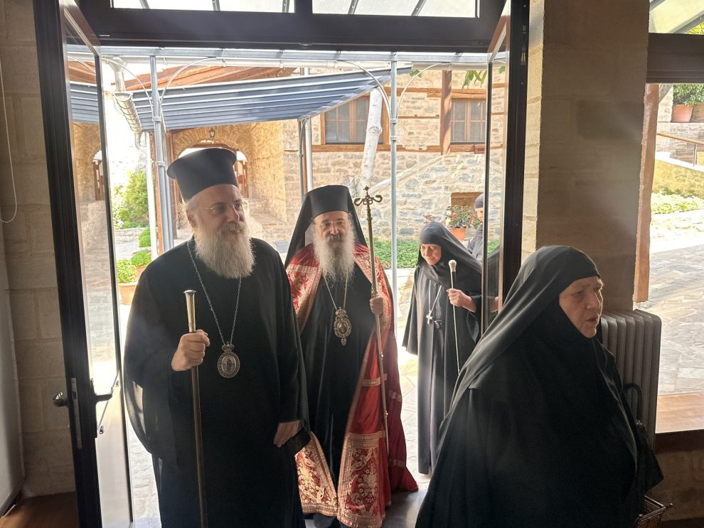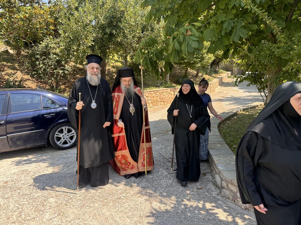 Τον Σεβασμιώτατο Πατρών υποδέχθηκε στα προπύλαια της Μονής η Ηγουμένη Θεοφύλακτη μοναχή με όλη την αδελφότητα, παρουσία του Μητροπολίτου Τρίκκης Χρυσοστόμου.