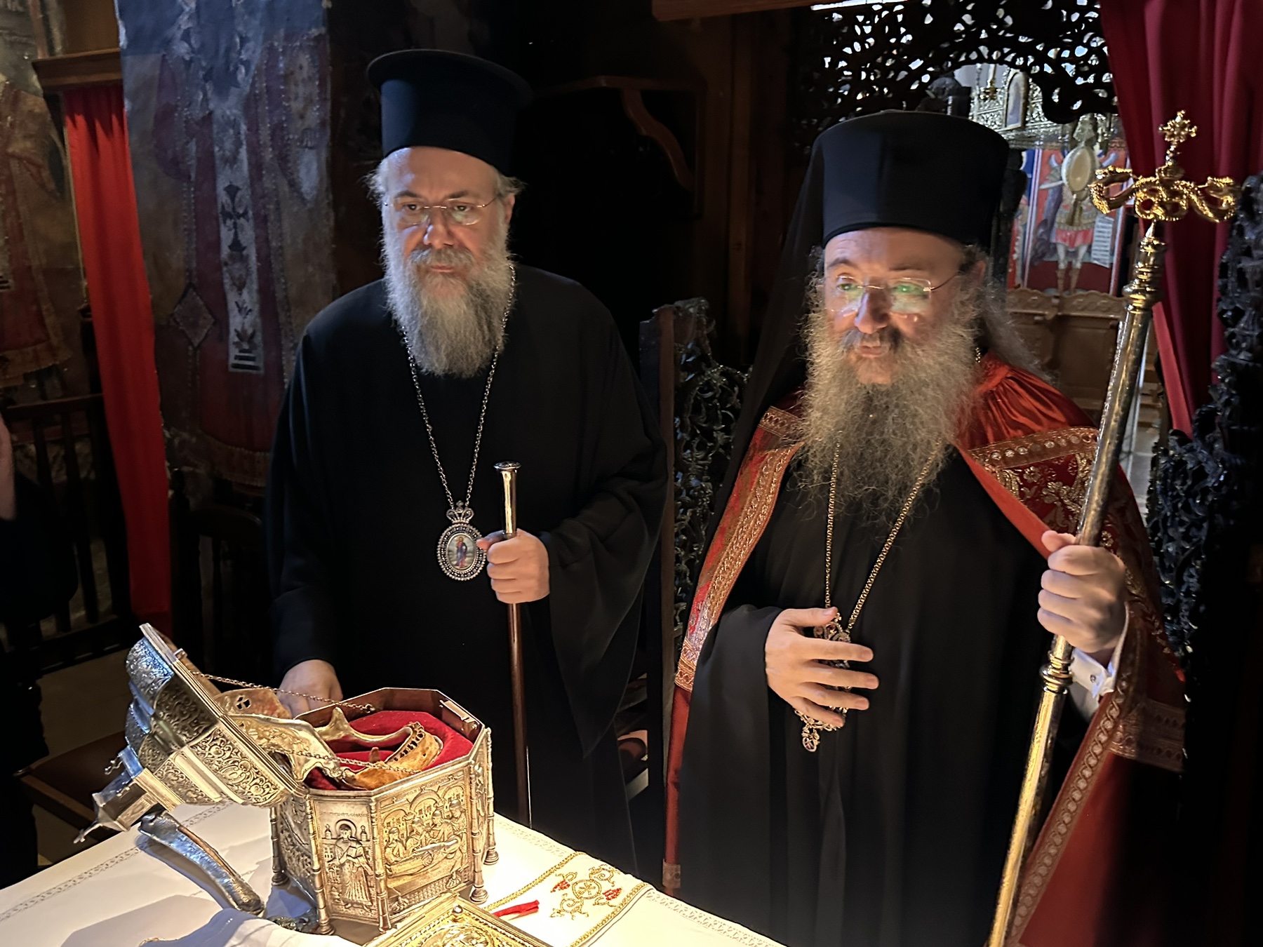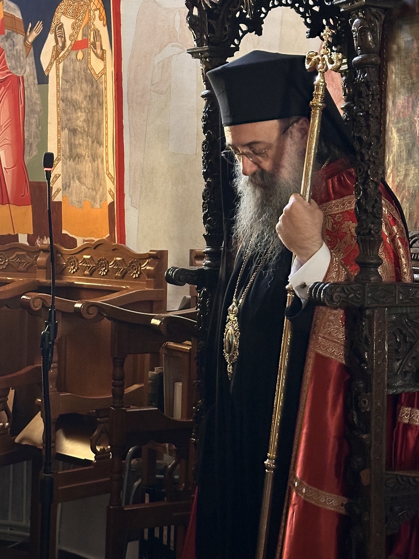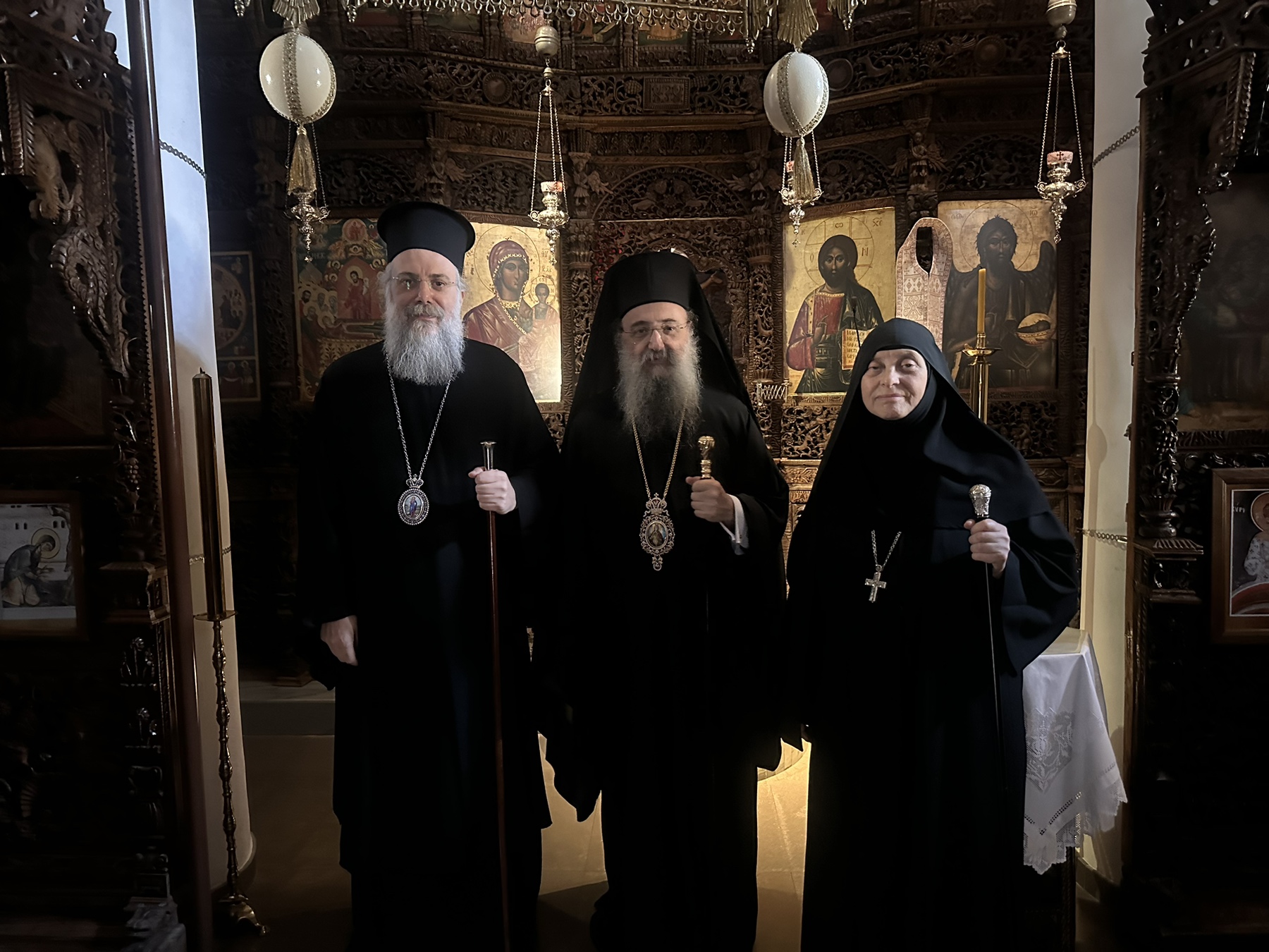 Τον Σεβασμιώτατο Πατρών υποδέχθηκε στα προπύλαια της Μονής η Ηγουμένη Θεοφύλακτη μοναχή με όλη την αδελφότητα, παρουσία του Μητροπολίτου Τρίκκης Χρυσοστόμου.