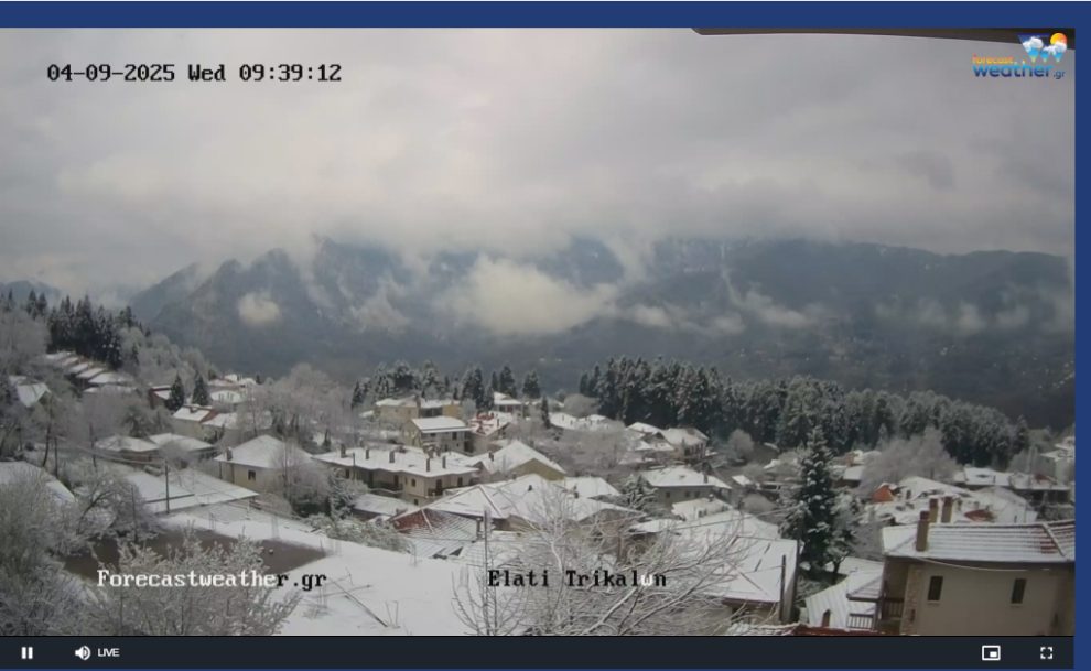 Όπως καταγράφει το trikalavoice.gr από την Ελάτη και πάνω όλα τα χωριά είναι ντυμένα στα λευκά. Δείτε εικόνα live από το forecastweather.gr ΕΔΩ.