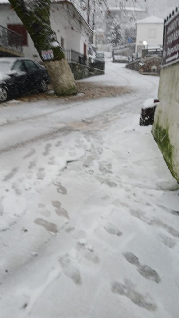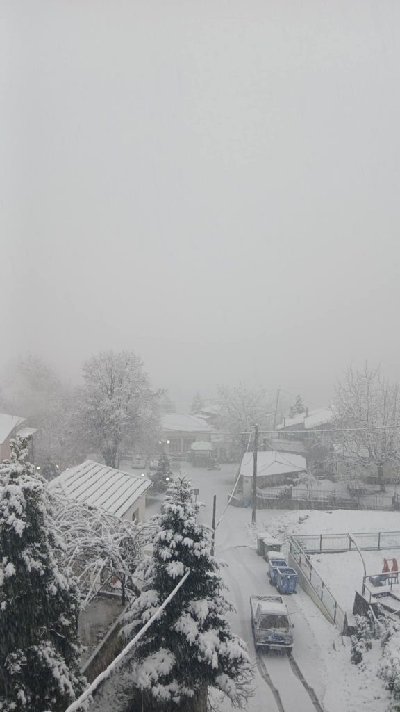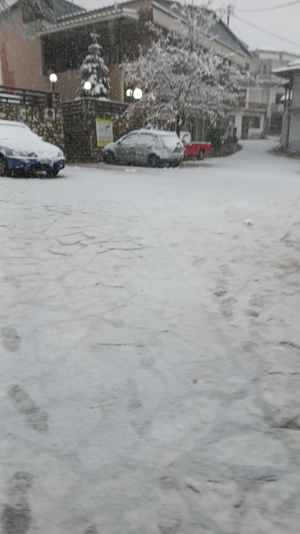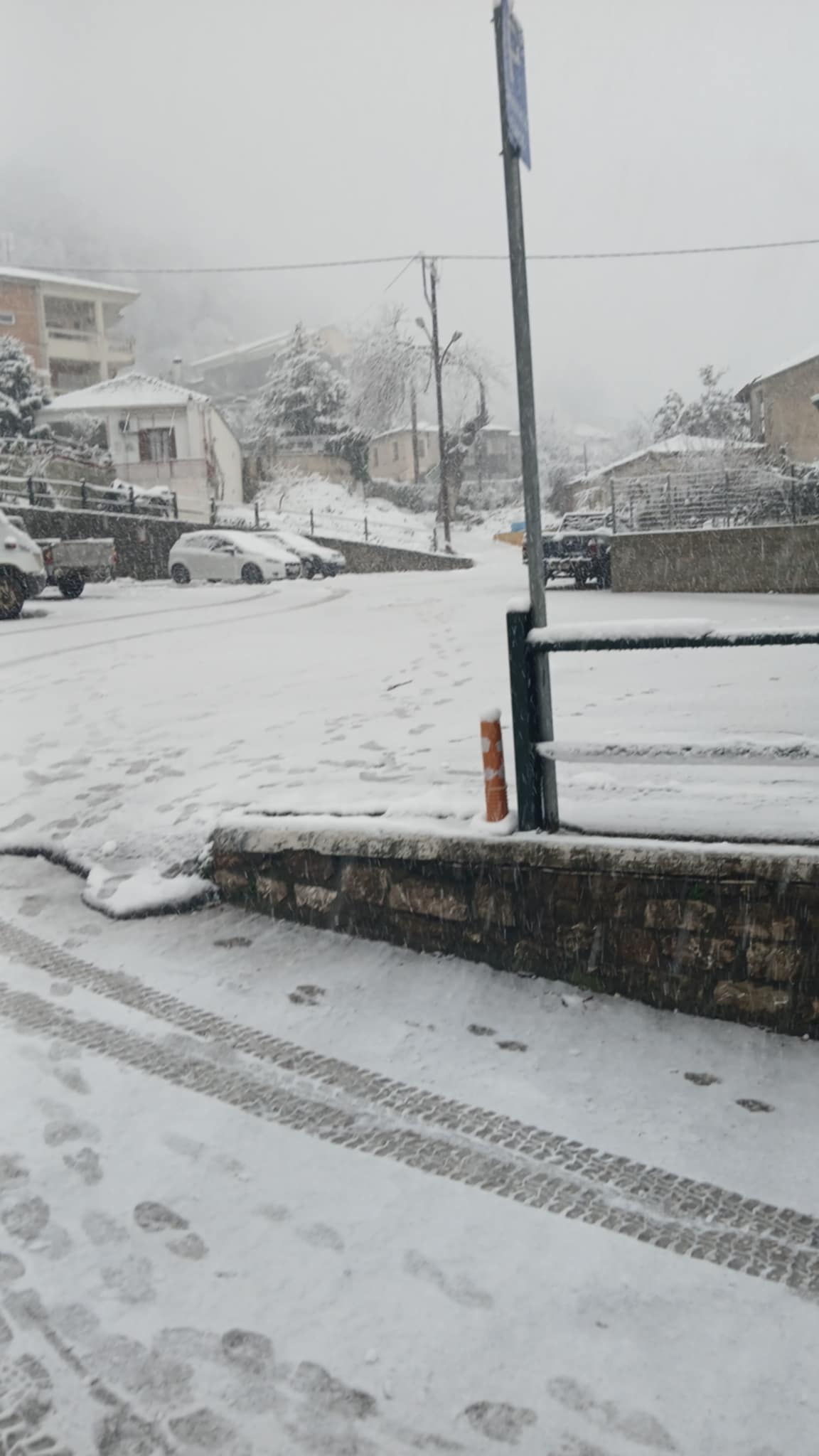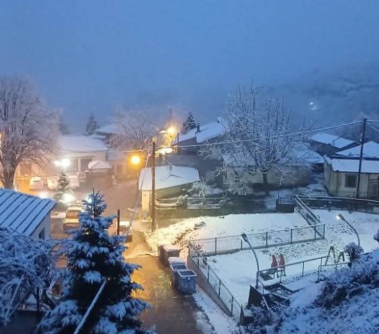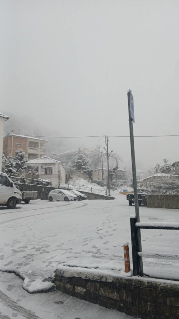 Στα λευκά ντύθηκαν τα χωριά στα ριζά του Κόζιακα, καθώς χιονίζει από χθες βράδυ.