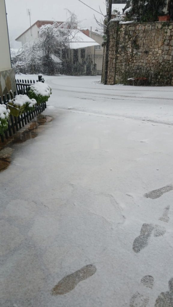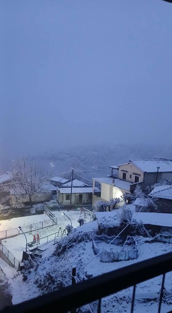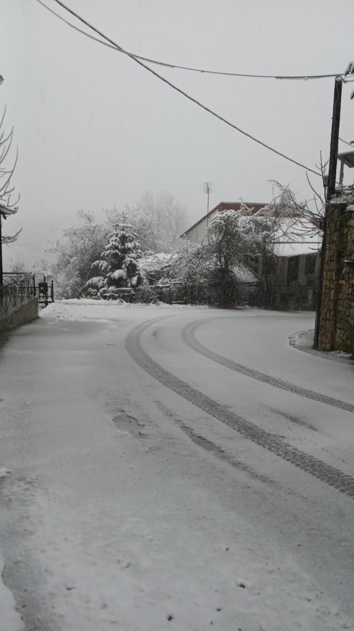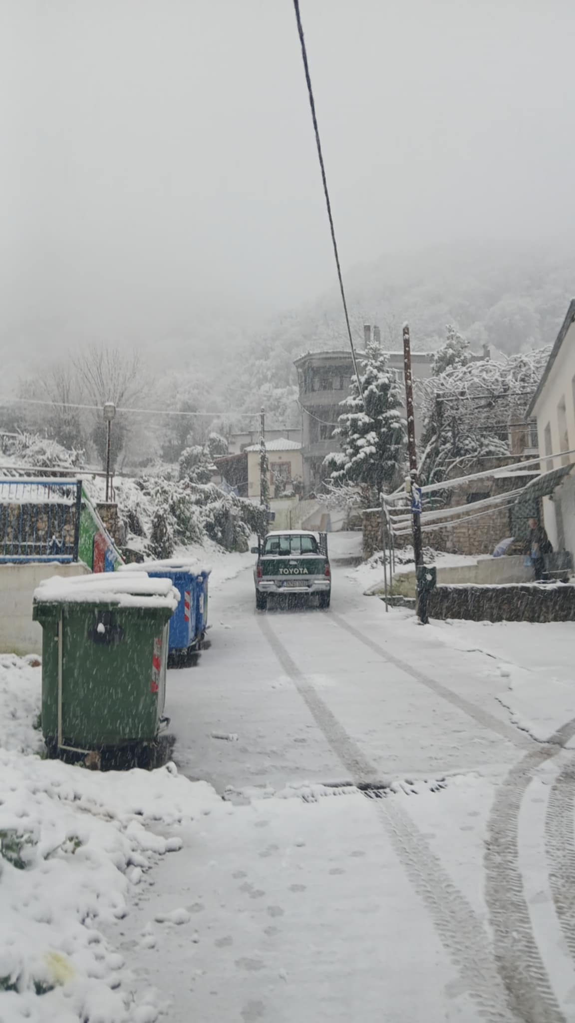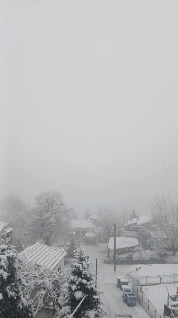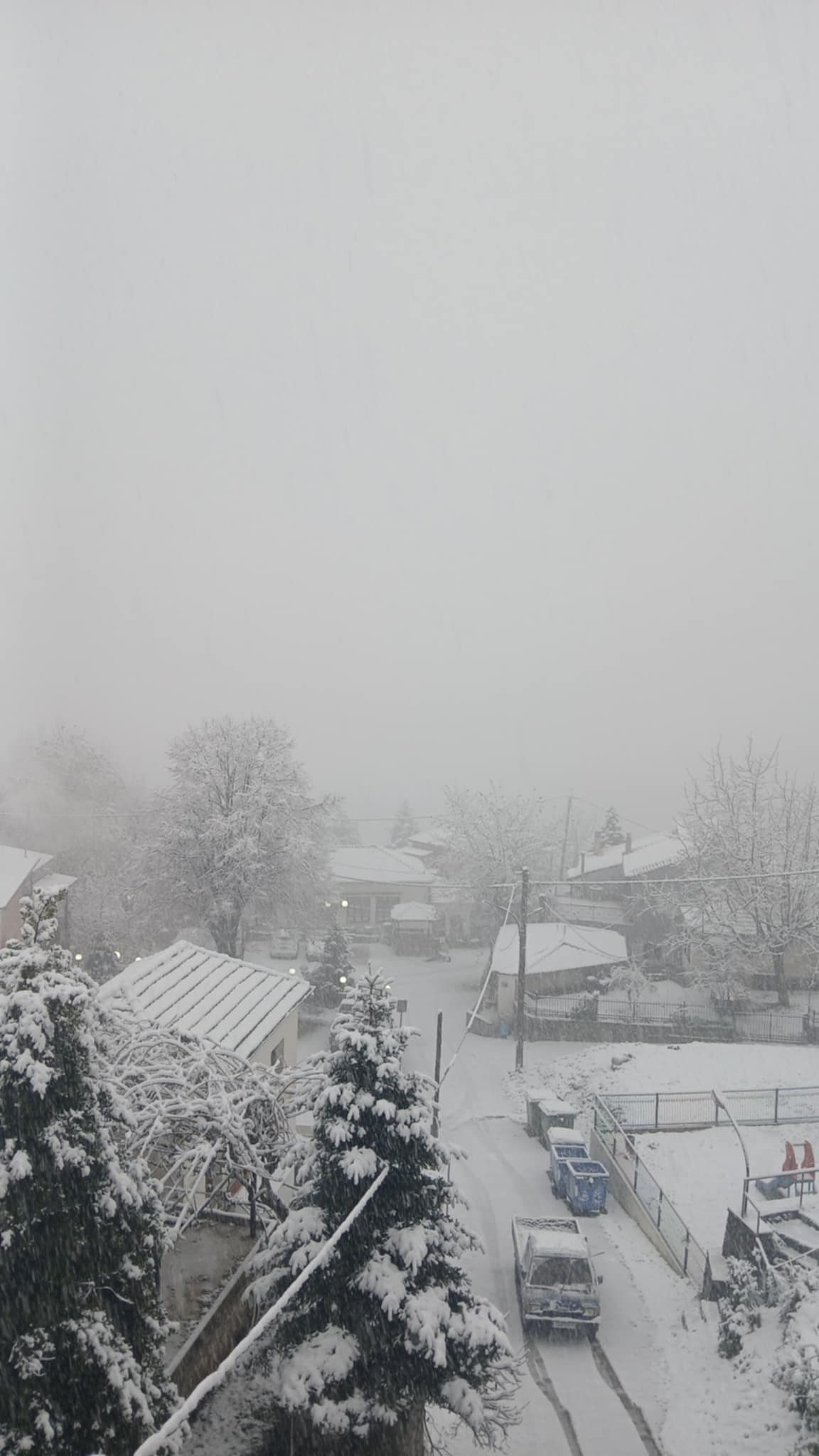 Στα λευκά ντύθηκαν τα χωριά στα ριζά του Κόζιακα, καθώς χιονίζει από χθες βράδυ.