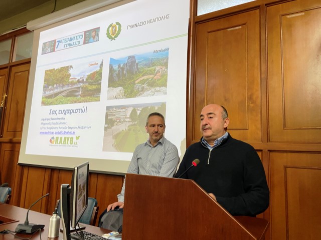 Ο Δήμαρχος Τρικκαίων Νίκος Σακκάς απηύθυνε χαιρετισμό, ευχαριστώντας εκπαιδευτικούς και μαθητές για την επίσκεψη, σημειώνοντας, παράλληλα, τα έργα του Δήμου στον τομέα του περιβάλλοντος συνολικότερα.