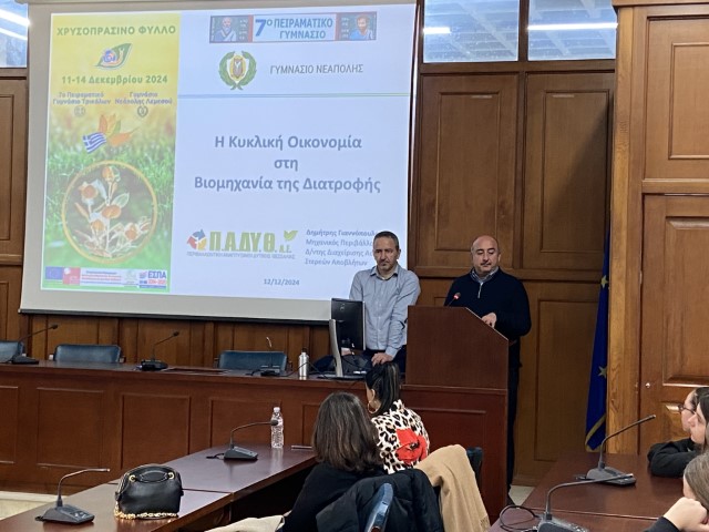 Παραδείγματα των Τρικάλων σε ζητήματα κυκλικής οικονομίας παρουσιάστηκαν σε μαθητές/τριες από την Ελλάδα και την Κύπρο, στο Δημαρχείο Τρικκαίων, την Πέμπτη 12 Δεκεμβρίου 2024. Ο Διευθυντής Διαχείρισης Στερεών Αποβλήτων της ΠΑΔΥΘ (Περιβαλλοντική Αναπτυξιακή Δυτικής Θεσσαλίας) κ. Δημήτρης Γιαννόπουλος – Μηχανικός Περιβάλλοντος, παρουσίασε στους μαθητές και τις μαθήτριες στοιχεία για τη λειτουργία του ΧΥΤΑ, τα νέα έργα και τη συνολική διάσταση της κυκλικής οικονομίας, με έμφαση στη διατροφή.