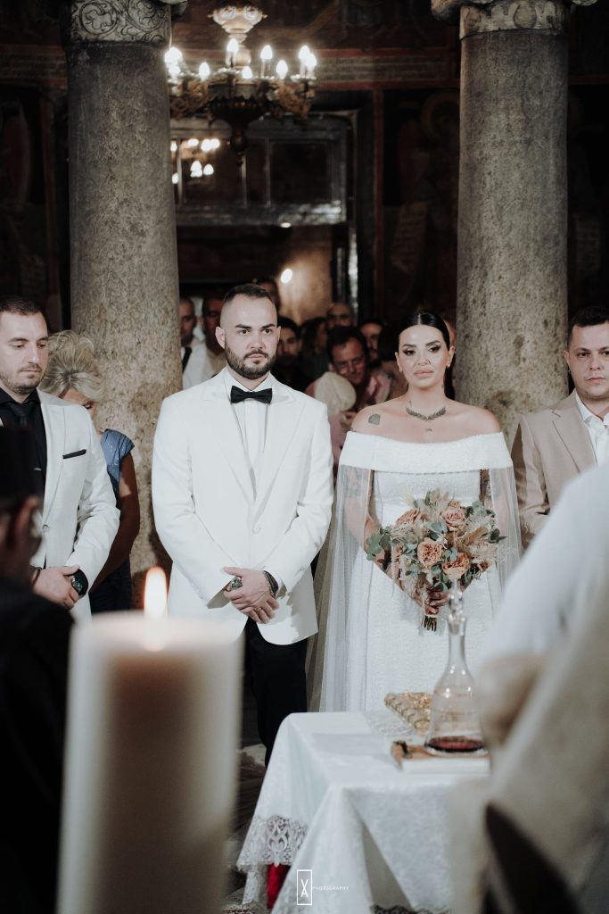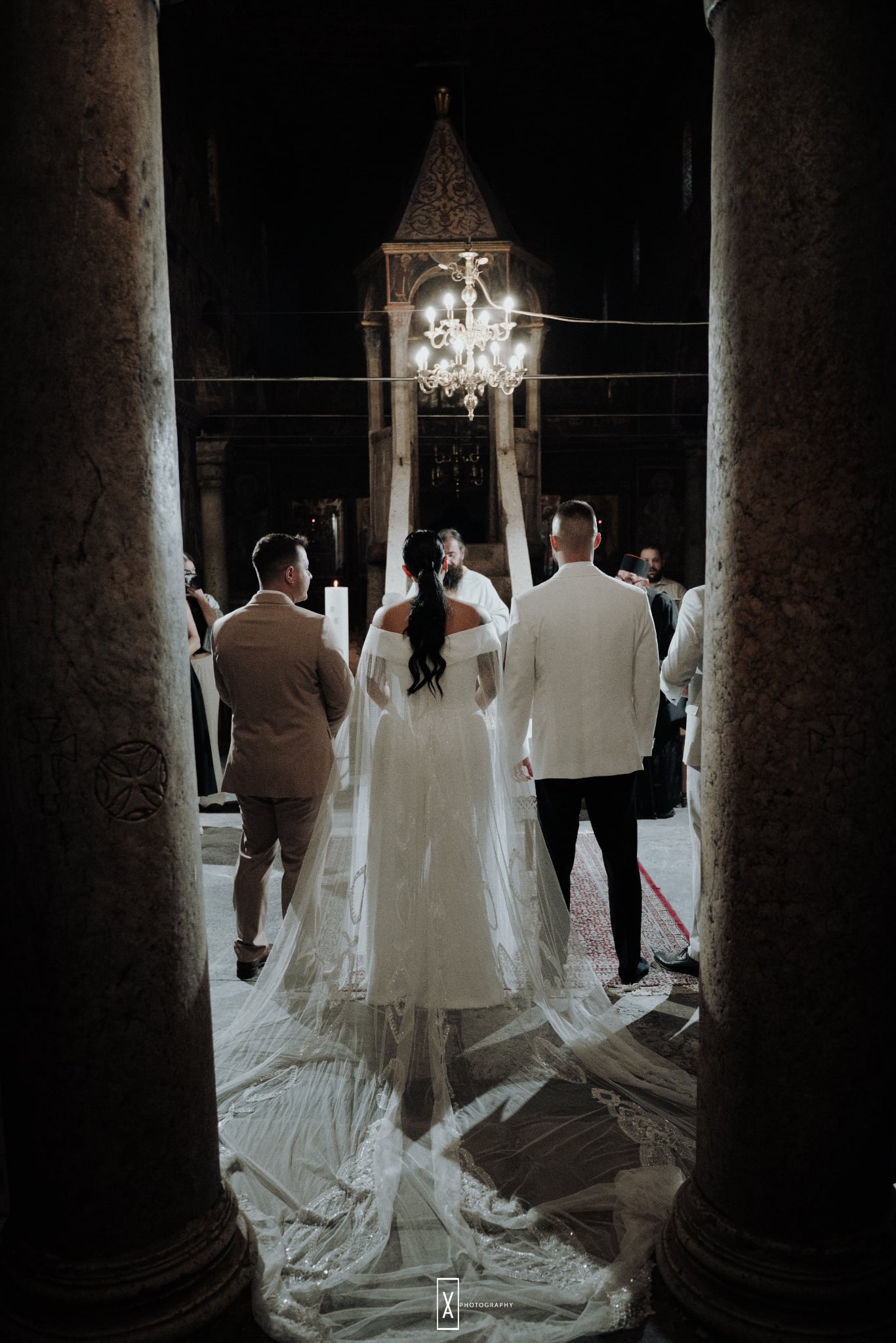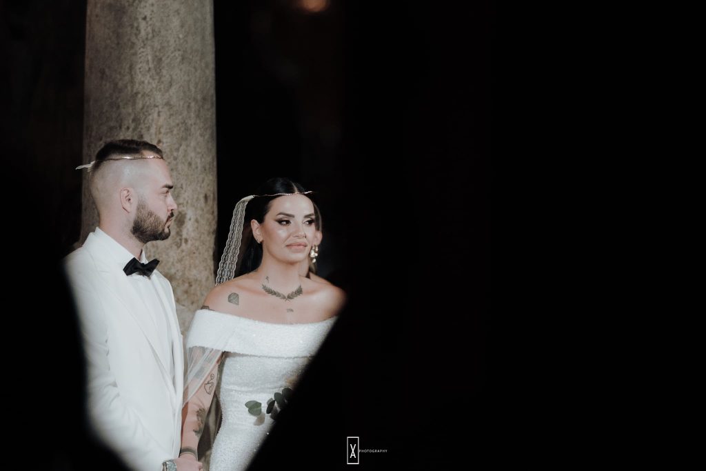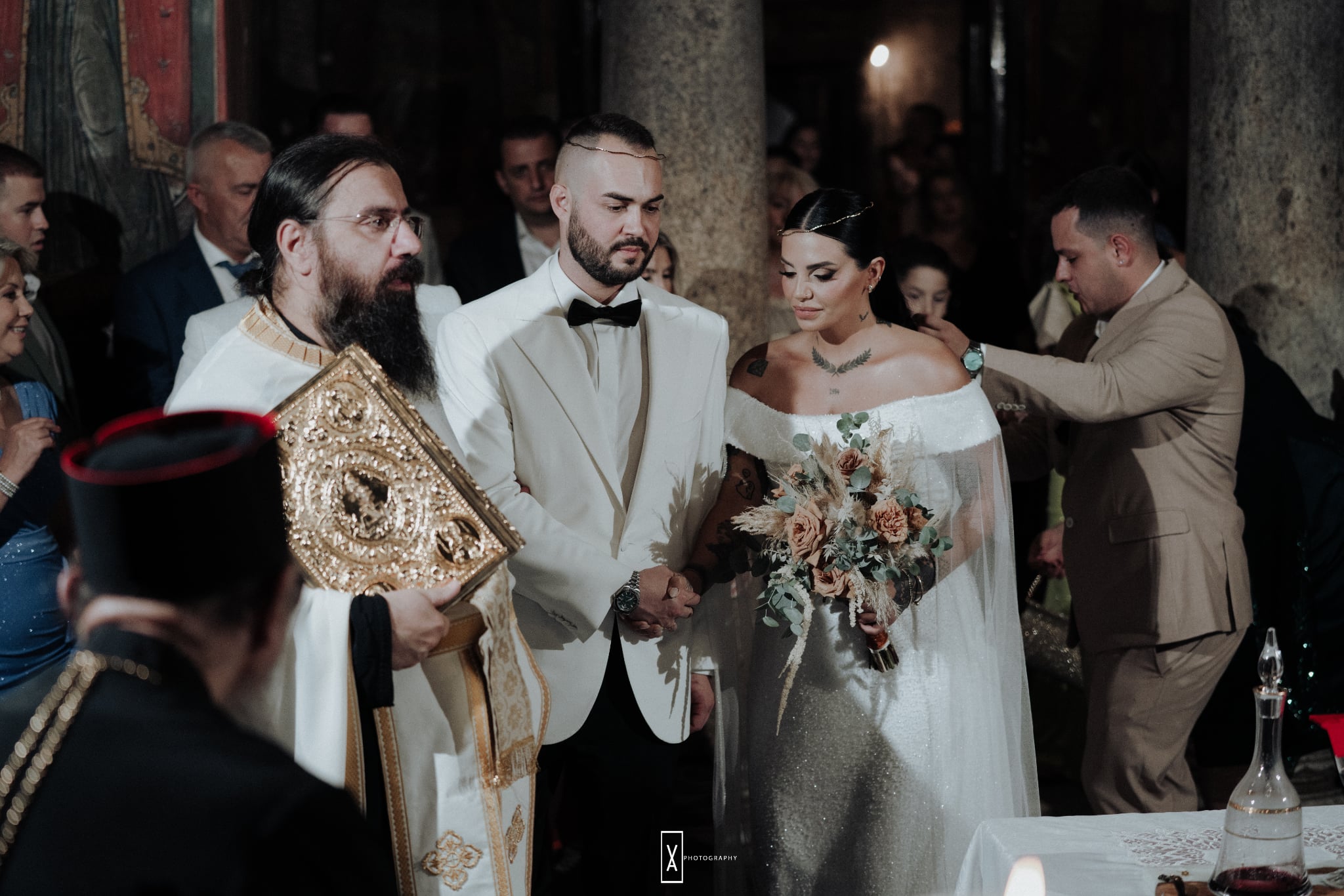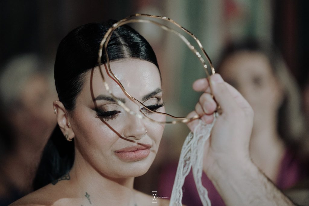 Το νεαρό ζευγάρι στεφάνωσαν ο Άρης Ζερμπίνης και ο Γιάννης Μπασαράς, ενώ οι εκατοντάδες φίλοι τους τους έραναν με ρύζι. Δείτε πως κατέγραψε το Ιερό Μυστήριο το team της V.A. Pgotography: