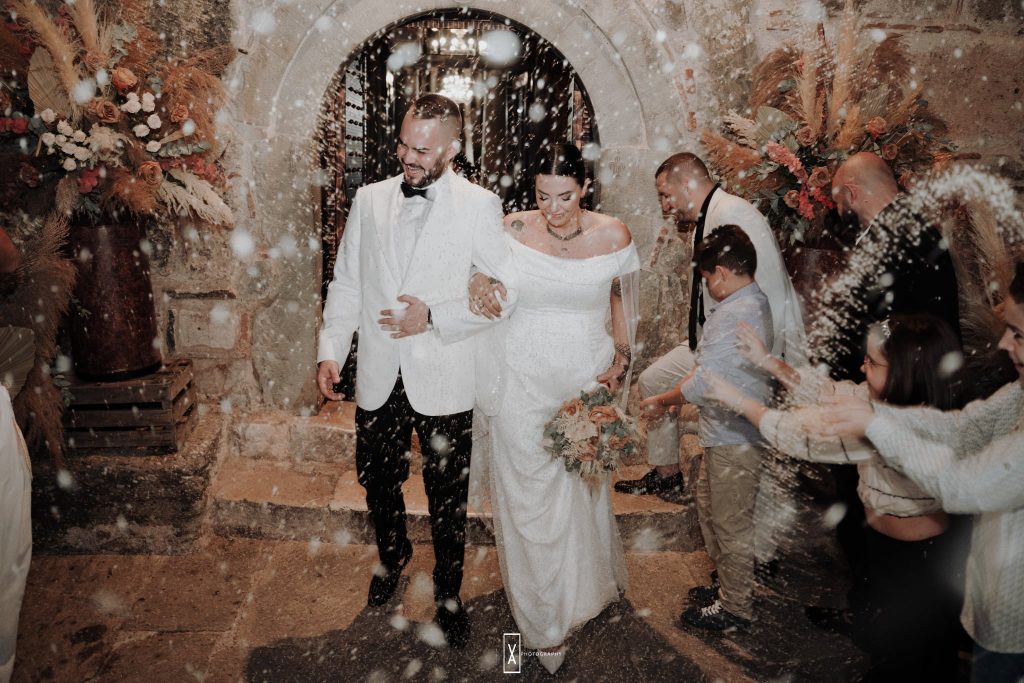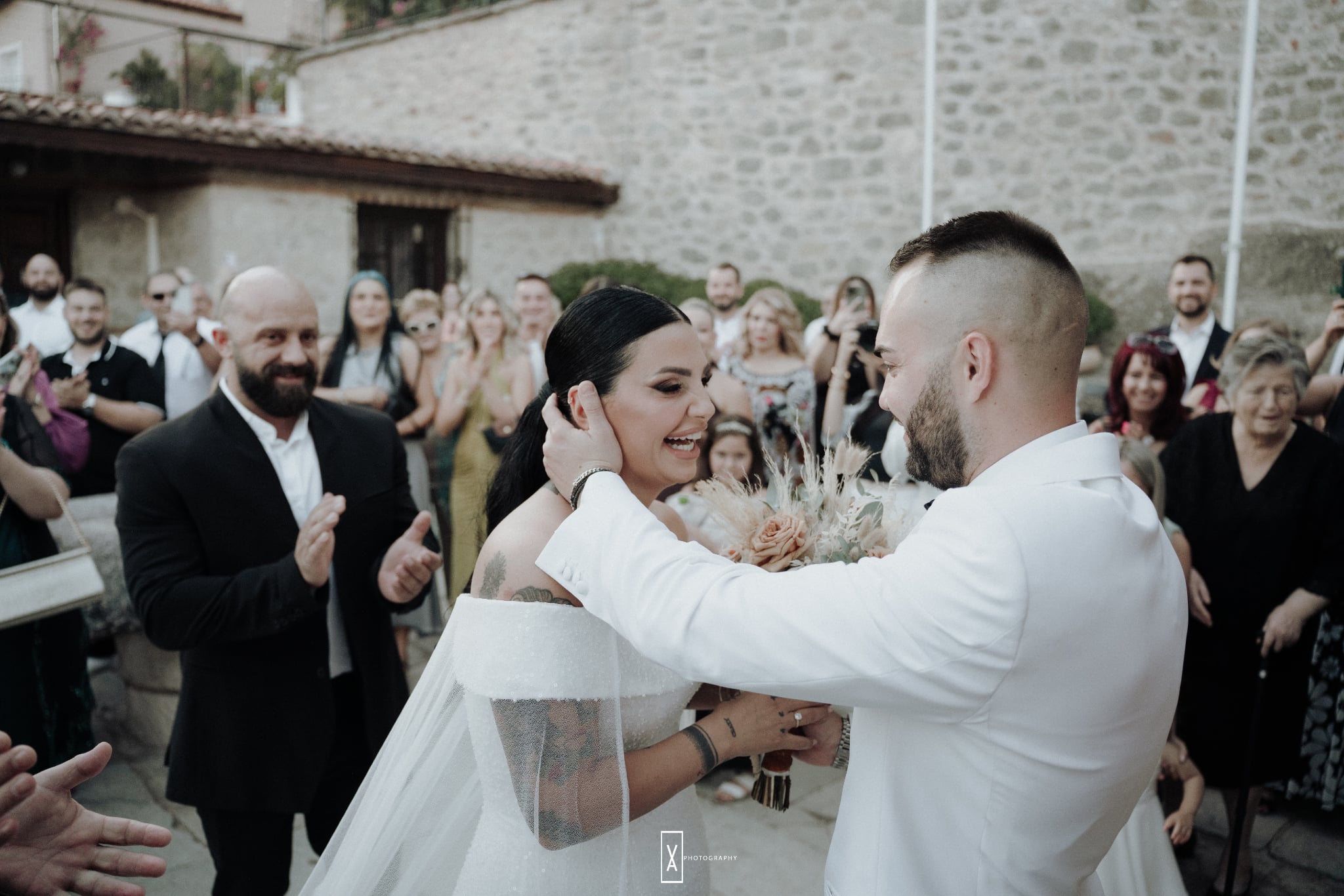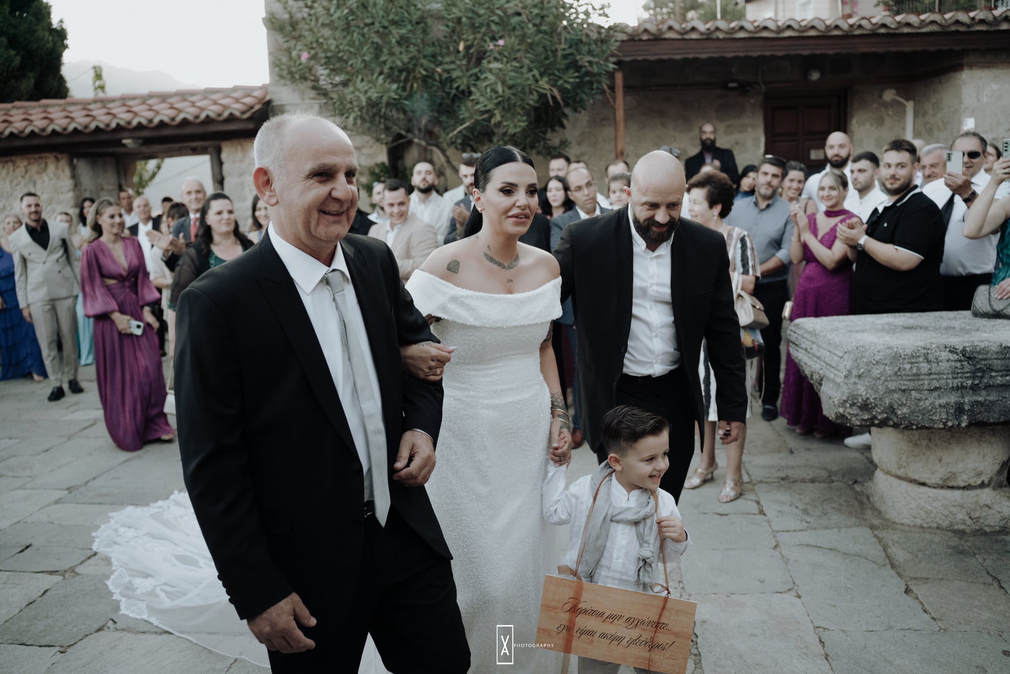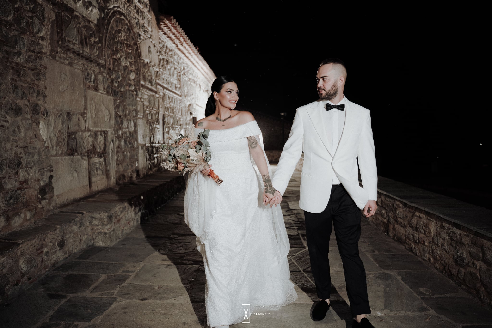 Το νεαρό ζευγάρι στεφάνωσαν ο Άρης Ζερμπίνης και ο Γιάννης Μπασαράς, ενώ οι εκατοντάδες φίλοι τους τους έραναν με ρύζι. Δείτε πως κατέγραψε το Ιερό Μυστήριο το team της V.A. Pgotography: