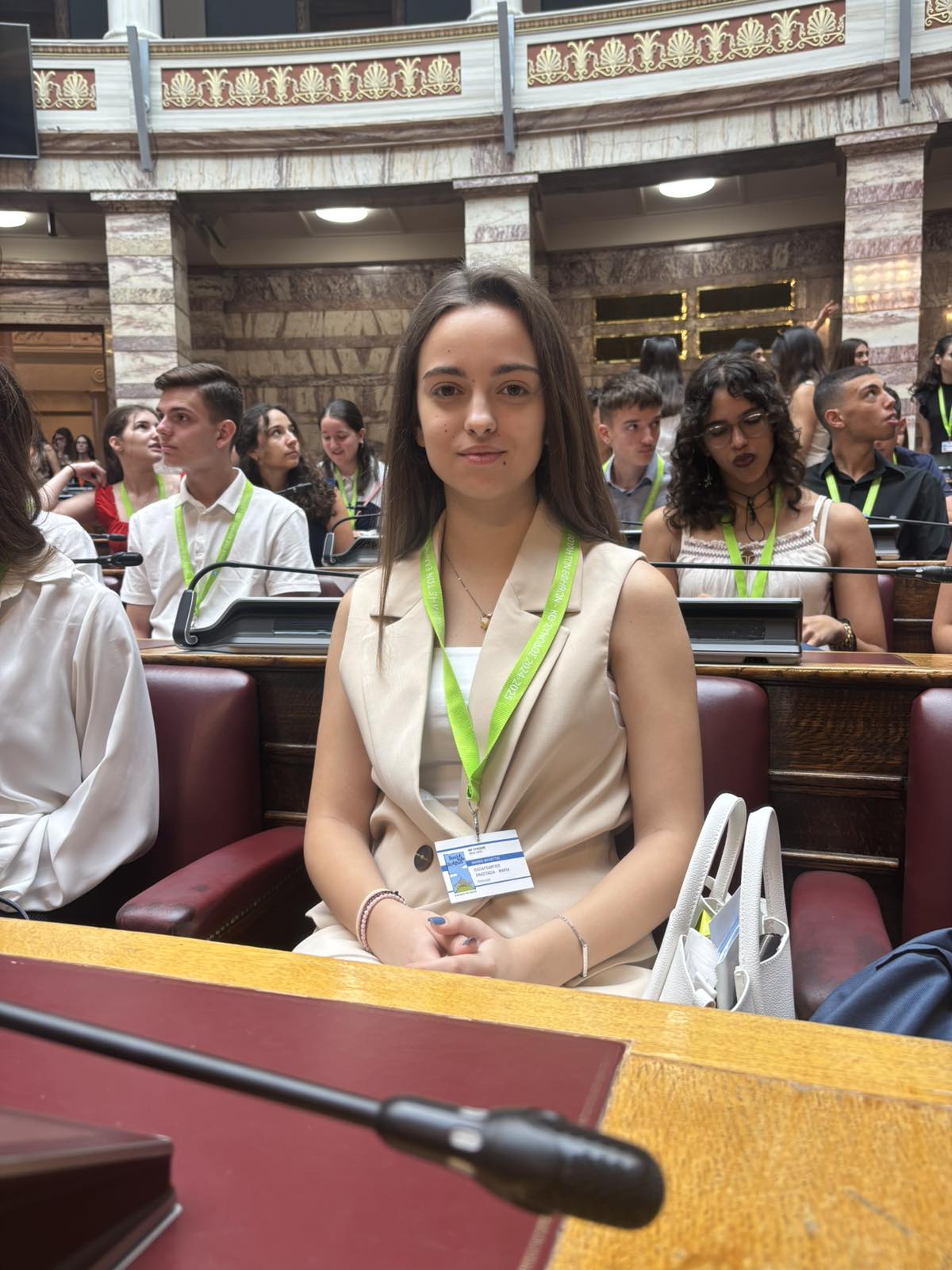 Στο βήμα της Βουλής των Εφήβων ανέβηκε η Τρικαλινή μαθήτρια Αναστασία Παπαγεωργίου.
