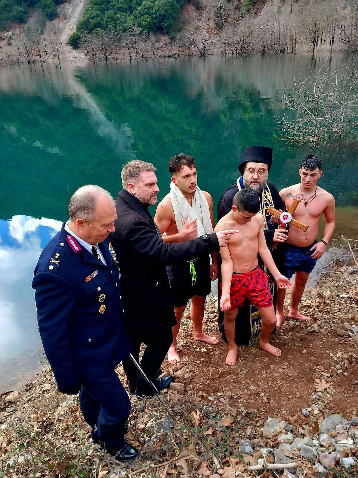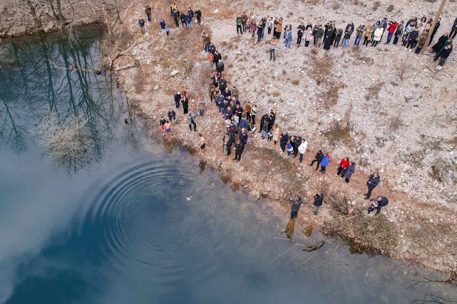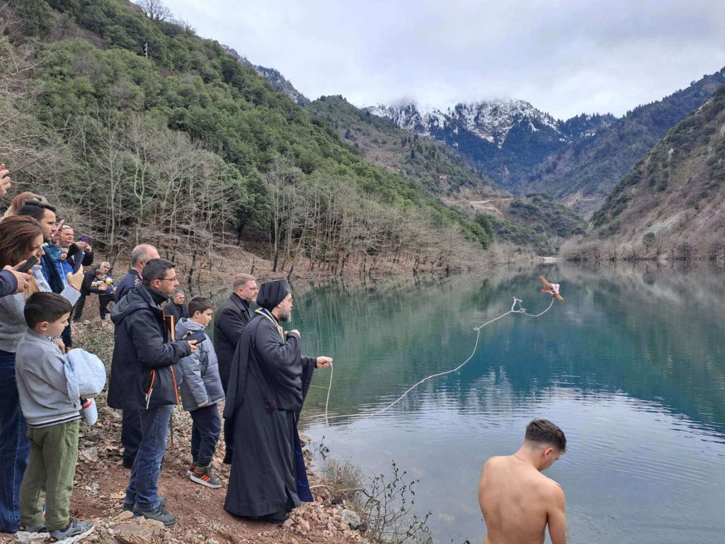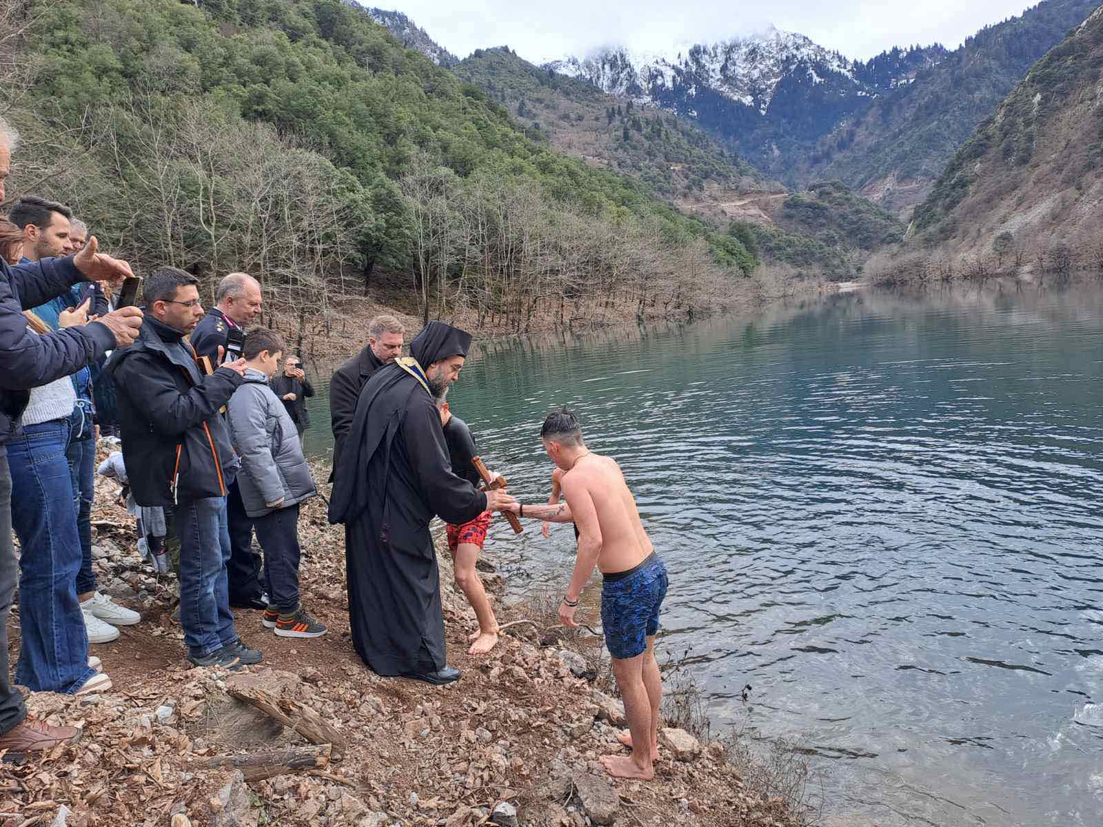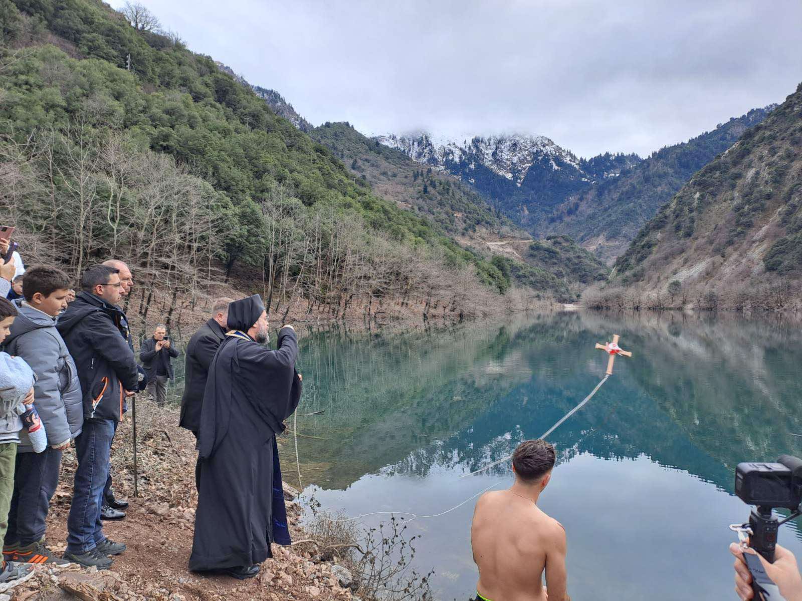 Τρεις νεαροί βούτηξαν στην λίμνη για να πιάσουν τον Σταυρό ο Αθανάσιος Μάμαλης από τα Τρίκαλα και τα αδέλφια Θωμάς και Αχιλλέας Μπαλαούρας από την Θεσσαλονίκη. Στους πιστούς προσφέρθηκε παραδοσιακή φιλοξενία με το πέρας της τελετής.
