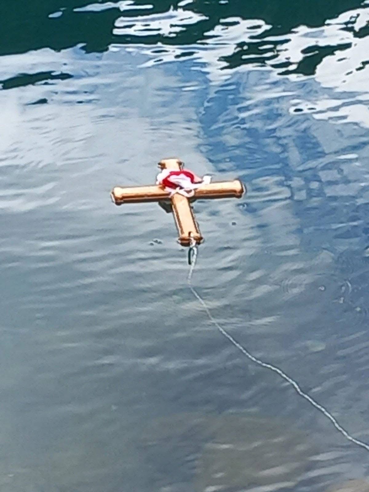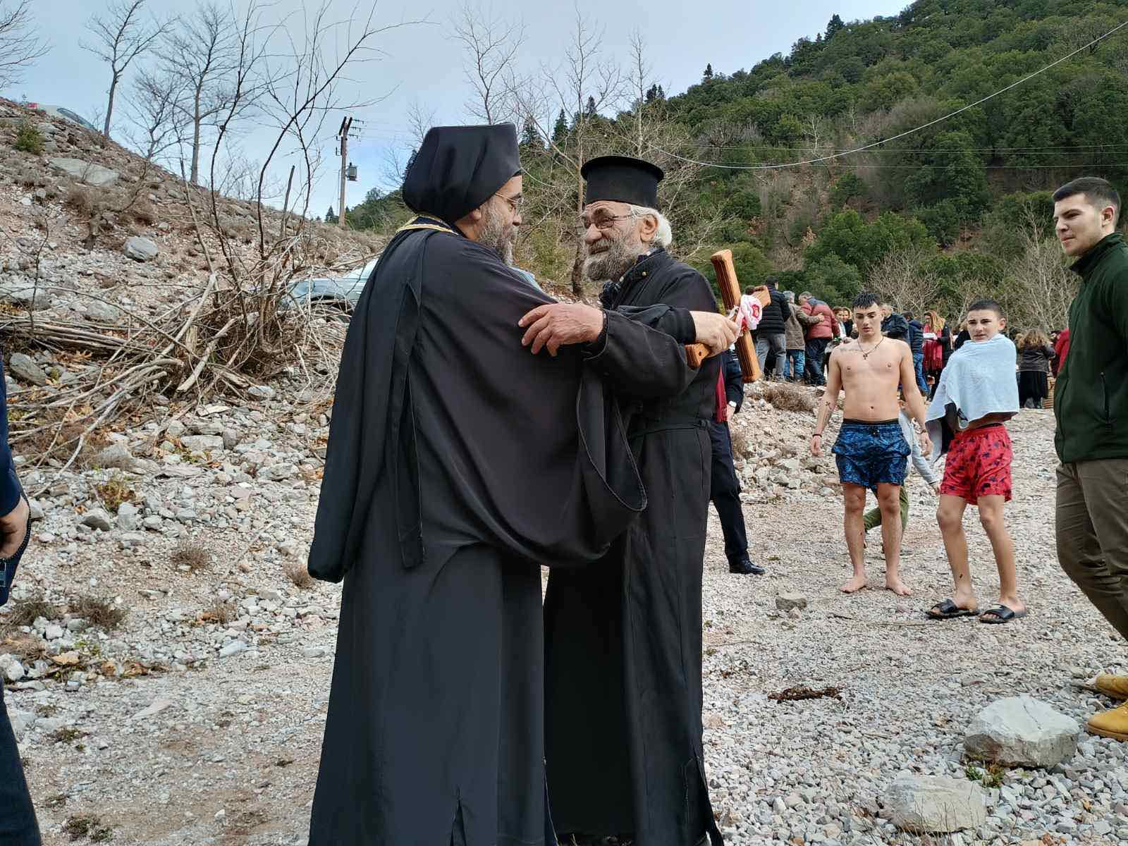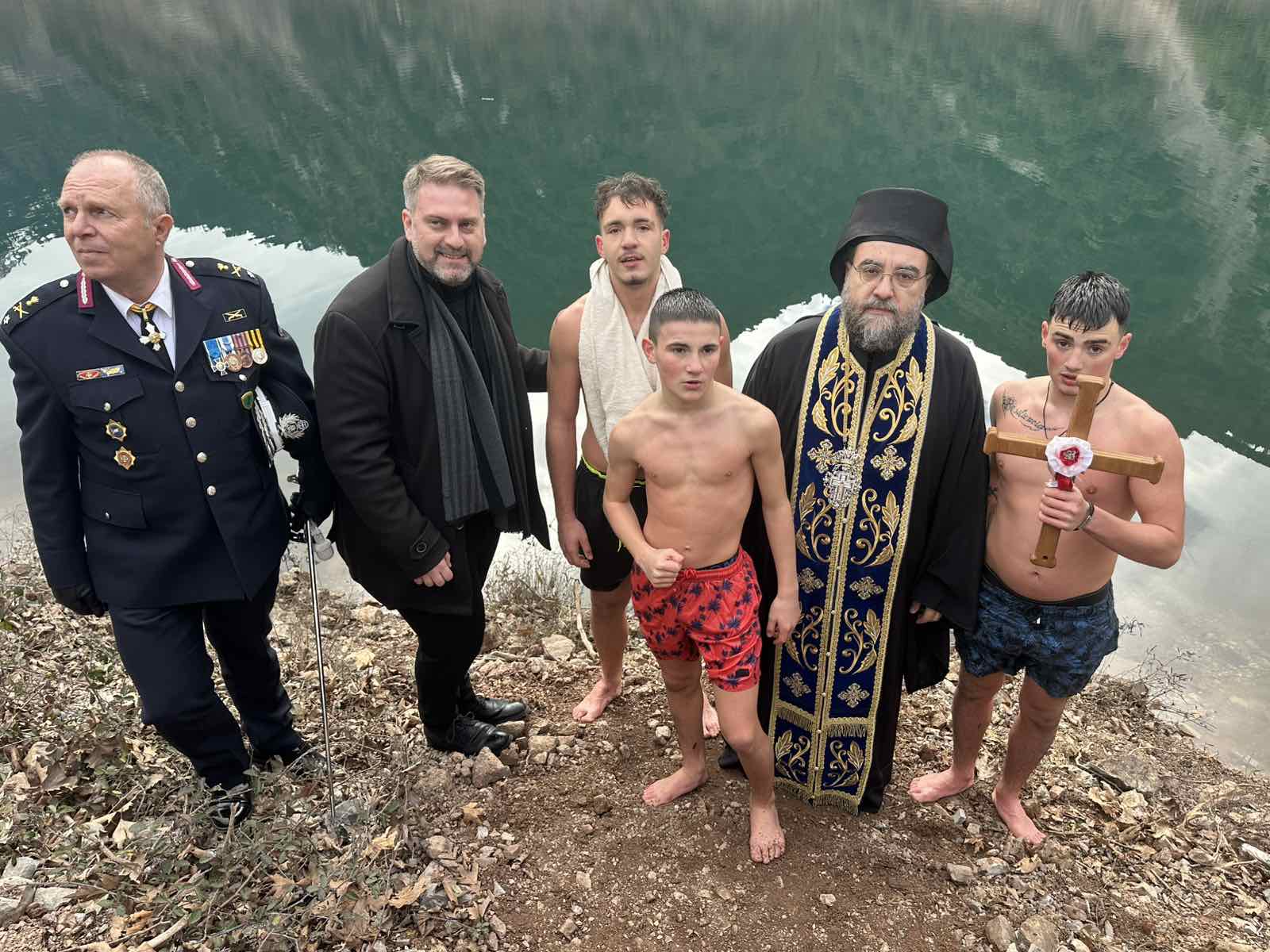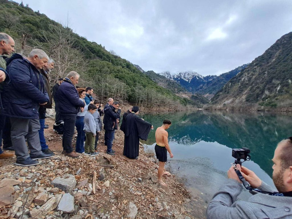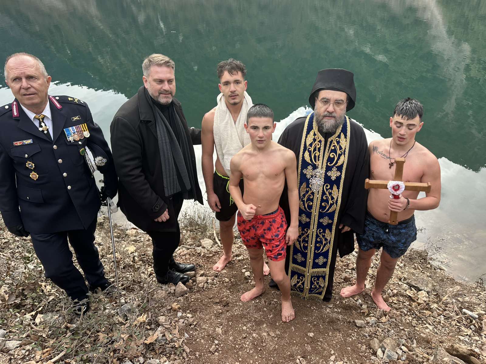 Τρεις νεαροί βούτηξαν στην λίμνη για να πιάσουν τον Σταυρό ο Αθανάσιος Μάμαλης από τα Τρίκαλα και τα αδέλφια Θωμάς και Αχιλλέας Μπαλαούρας από την Θεσσαλονίκη. Στους πιστούς προσφέρθηκε παραδοσιακή φιλοξενία με το πέρας της τελετής.