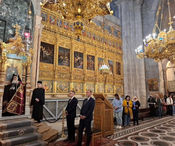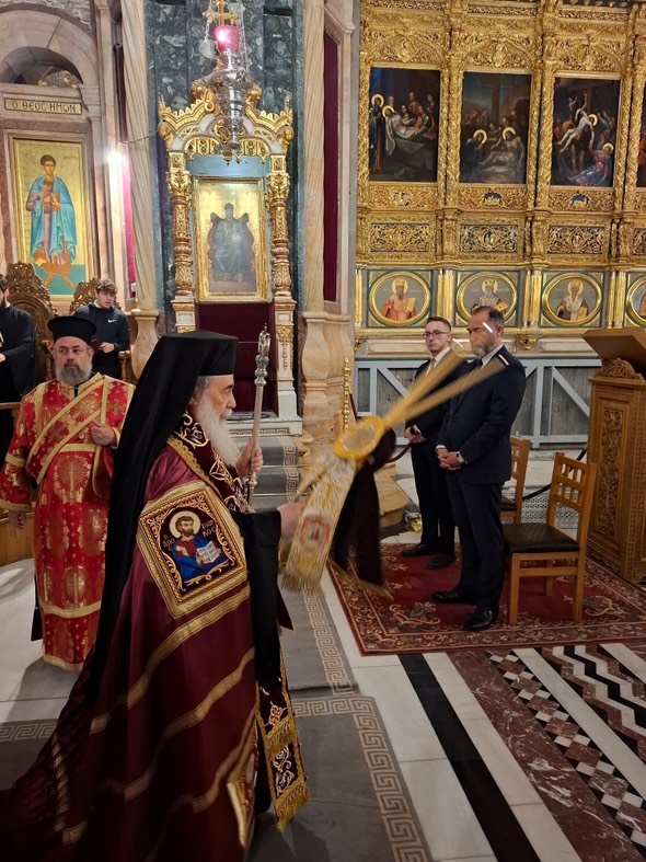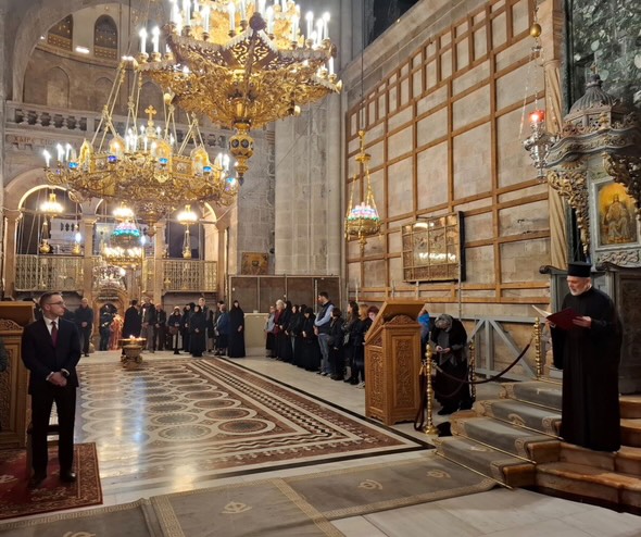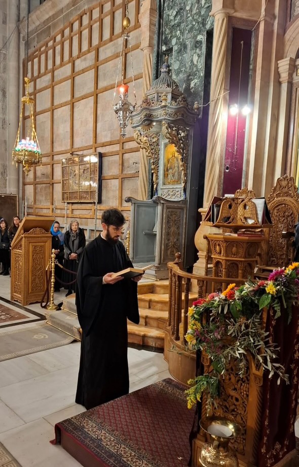 Σε κλίμα συντριβής τελέστηκε χθες το απόγευμα στον Ιερό Ναό της Αναστάσεως του Κυρίου στα Ιεροσόλυμα η Ακολουθία του Ακαθίστου Ύμνου, χοροστατούντος του Πατριάρχου Ιεροσολύμων Θεοφίλου και συμμετοχή Αρχιερέων και Μοναχών της Αγιοταφικής αδελφότητας.