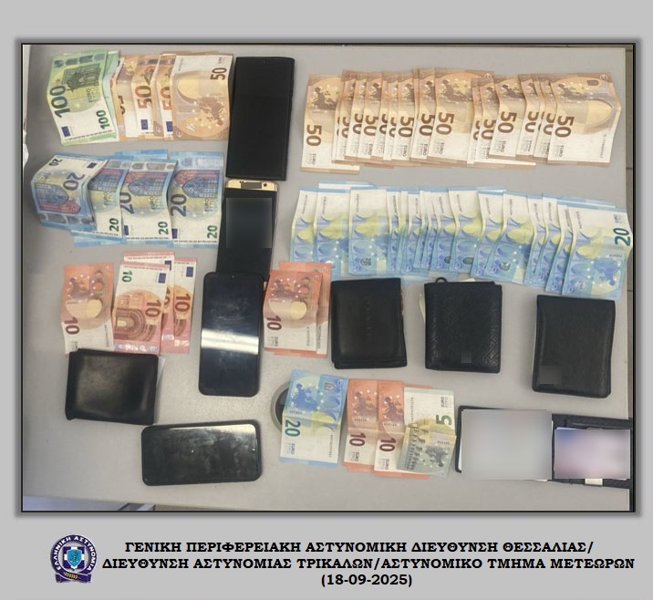 Ειδικότερα, όπως προέκυψε, προχθές (16-09-2025) το πρωί σε περιοχή του Δήμου Μετεώρων, οι -3- δράστες, με τη μέθοδο του τεχνητού συνωστισμού, αφαίρεσαν το πορτοφόλι άλλου αλλοδαπού, το οποίο περιείχε το χρηματικό ποσό των -200- ευρώ, τραπεζικές κάρτες και προσωπικά έγγραφα, ενώ ο τέταρτος δράστης είχε τον ρόλο του οδηγού Ι.Χ.Ε. αυτοκινήτου. Στη συνέχεια, με την χρήση αφαιρεθέντων καρτών, προέβησαν σε διαδικτυακές αγορές σε καταστήματα του εξωτερικού, συνολικής αξίας -1.893,23- ευρώ. Μετά από συντονισμένες ενέργειες των αστυνομικών εντοπίστηκαν οι δράστες να επιβαίνουν σε Ι.Χ.Ε. αυτοκίνητο. Ο ένας εκ των δραστών δήλωσε ψευδή στοιχεία ταυτότητας, επιδεικνύοντας ταυτότητα αλλοδαπών Αρχών με στοιχεία άλλου ατόμου, ενώ σε βάρος του υπάρχει σε ισχύ μέτρο που αφορά τη νομοθεσία περί αλλοδαπών. Κατασχέθηκαν από την κατοχή των δραστών το χρηματικό ποσό των -2.925- ευρώ, -5- πορτοφόλια, 4- κινητά τηλέφωνα, το προαναφερόμενο δελτίο ταυτότητας, με τα στοιχεία άλλου ατόμου καθώς και μία άδεια ικανότητας οδήγησης. Οι συλληφθέντες οδηγήθηκαν στον κ. Εισαγγελέα Πλημμελειοδικών Τρικάλων, ενώ την προανάκριση διενεργεί το Αστυνομικό Τμήμα Μετεώρων.