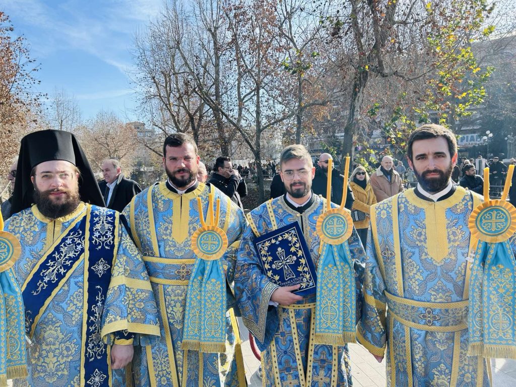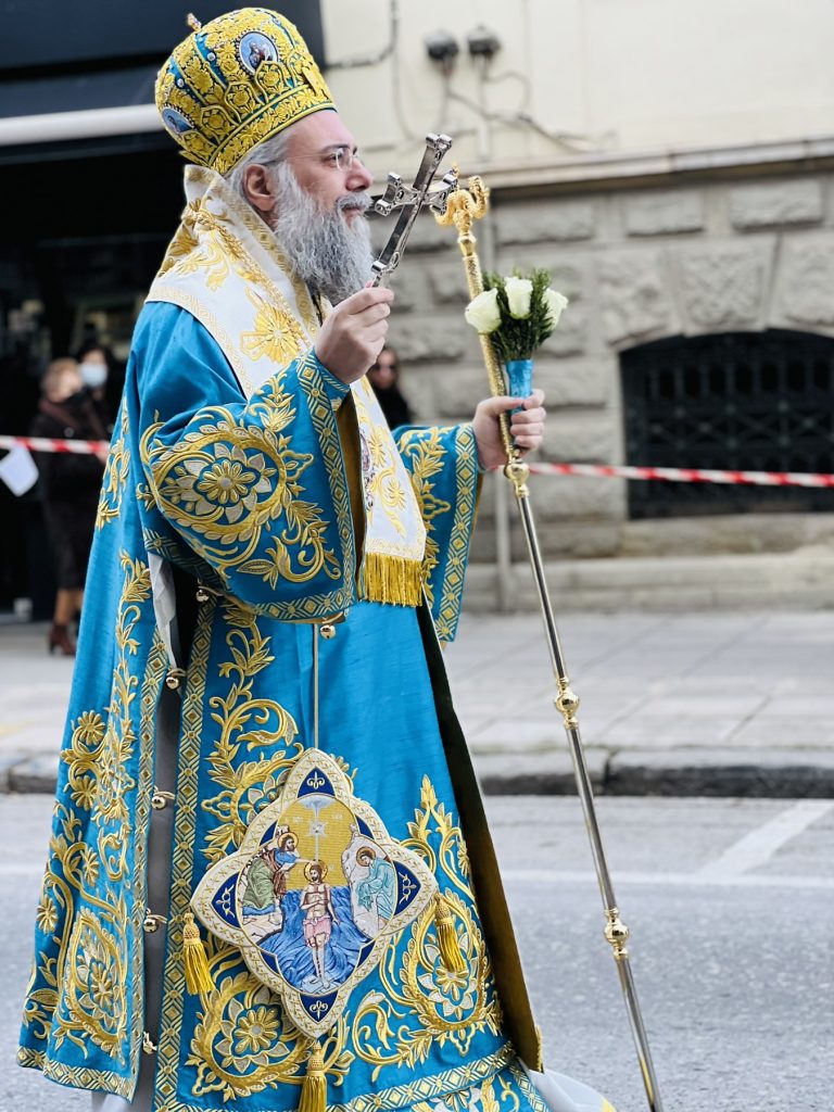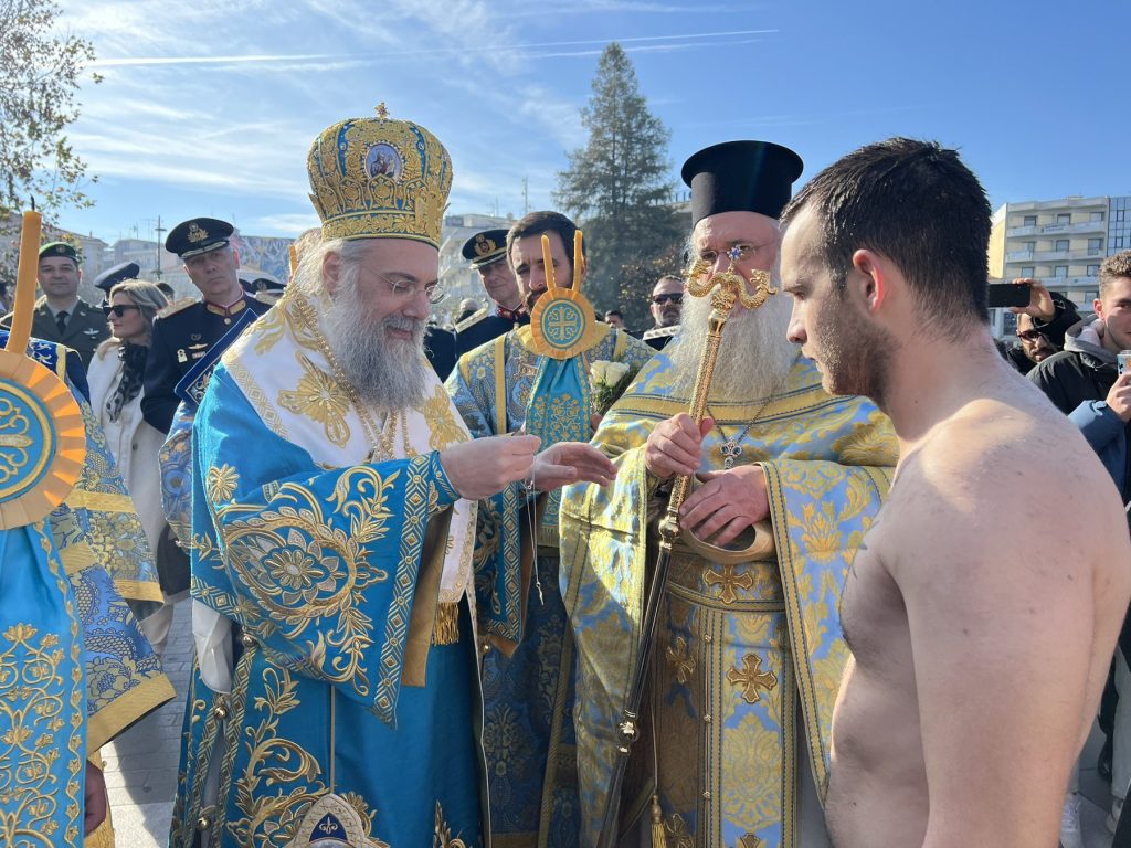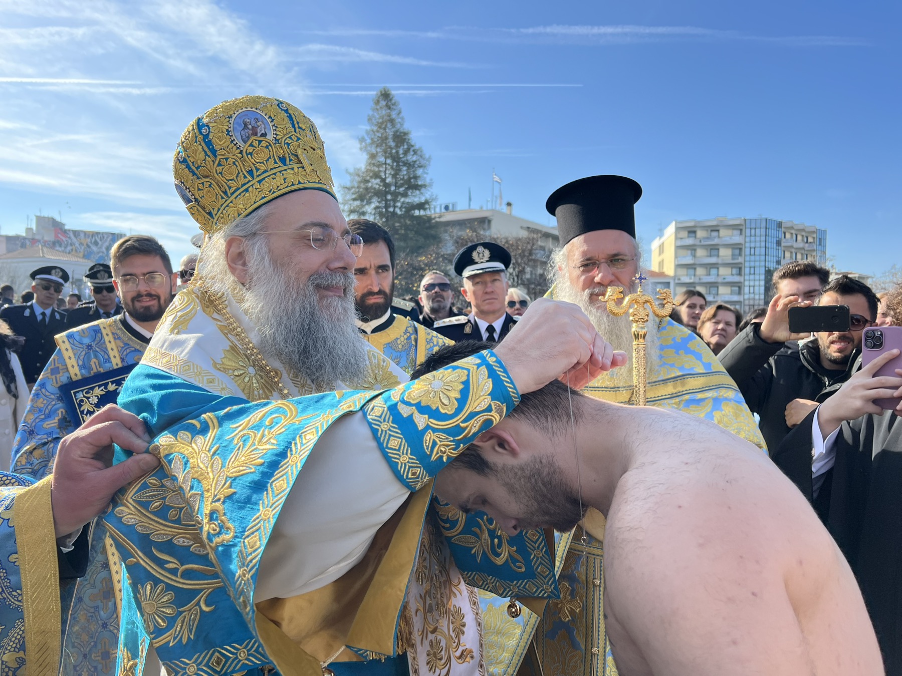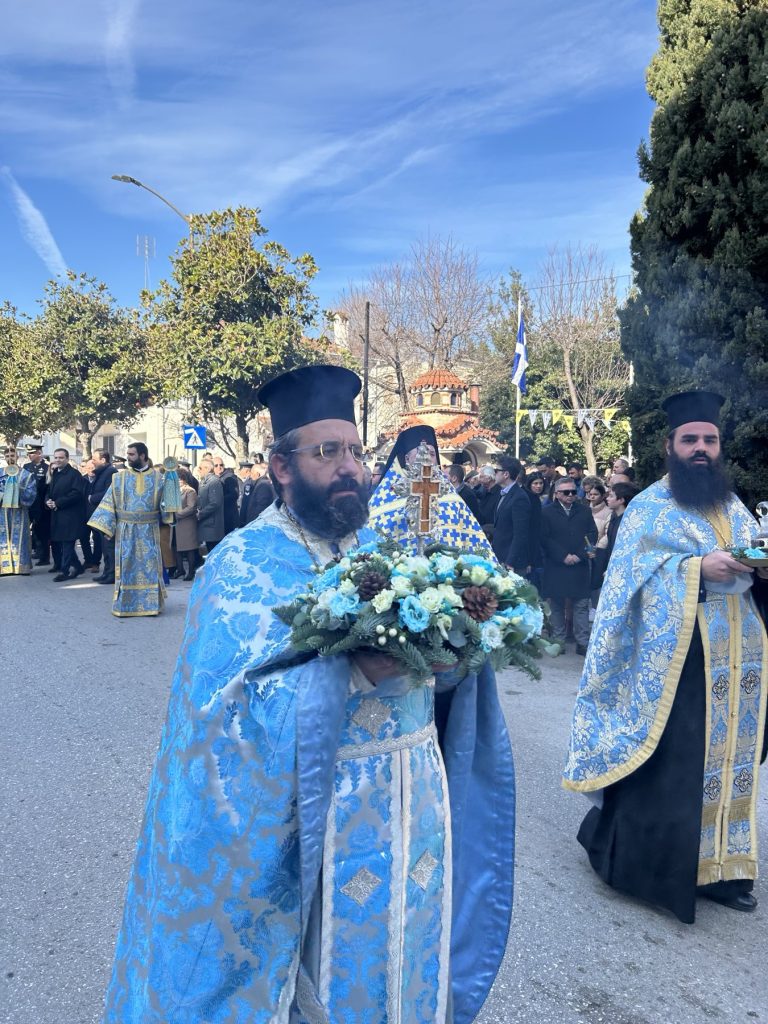 Ο Ποιμενάρχης μας την Ακολουθία του Μεγάλου Αγιασμού εντός του Ιερού Ναού, ενώ αμέσως μετά κατευθύνθηκε προς την κεντρική πεζογέφυρα για τον Αγιασμό των Υδάτων του Ληθαίου ποταμού. Βρέθηκαν μάλιστα τολμηροί οι οποίοι βούτηξαν στα νερά του.