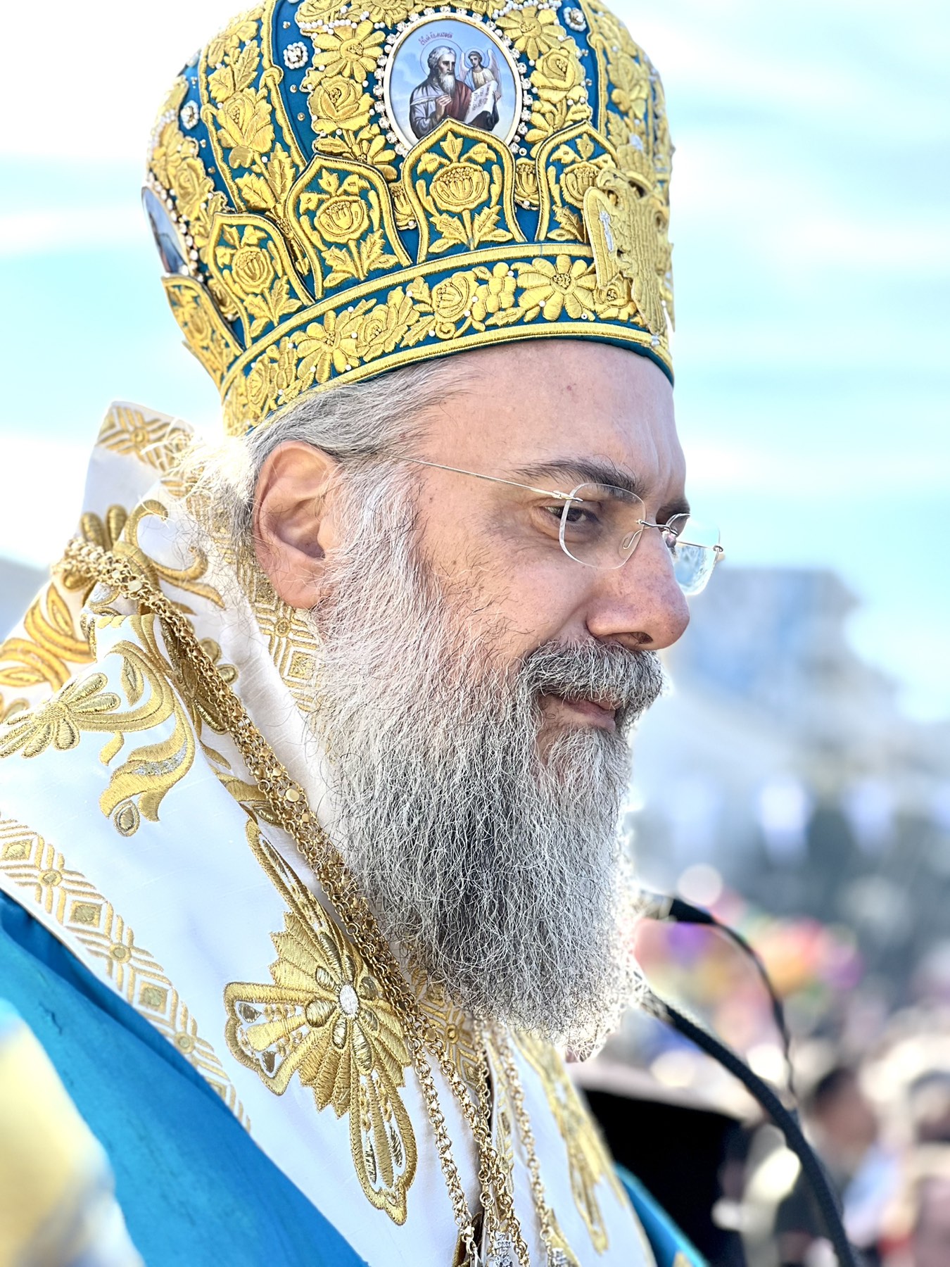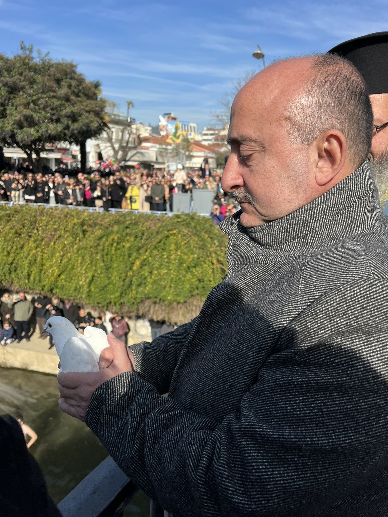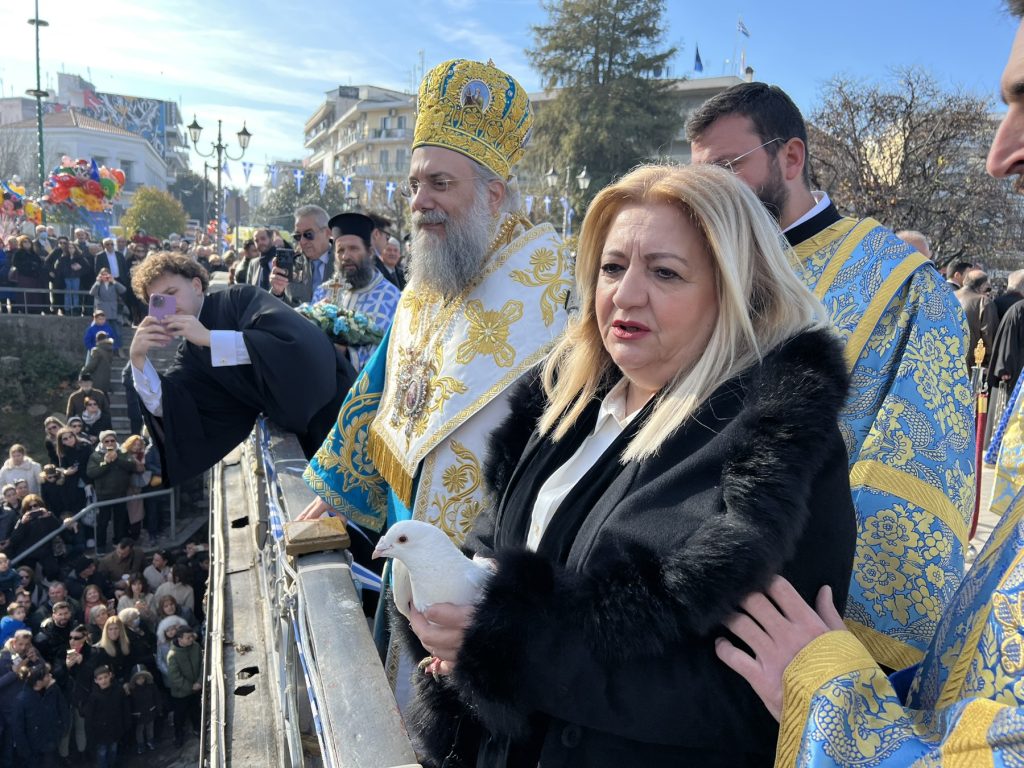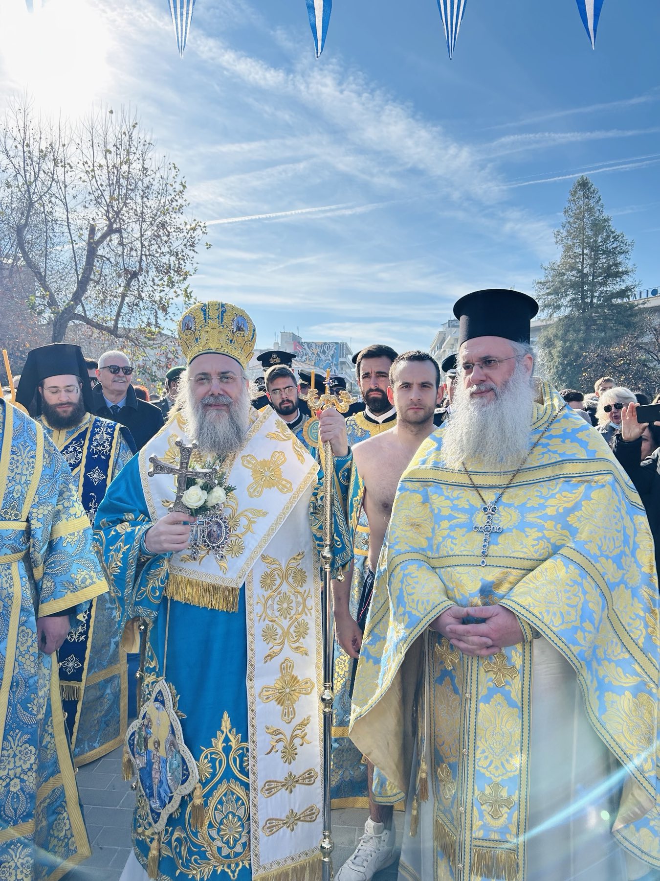Ο Ποιμενάρχης μας την Ακολουθία του Μεγάλου Αγιασμού εντός του Ιερού Ναού, ενώ αμέσως μετά κατευθύνθηκε προς την κεντρική πεζογέφυρα για τον Αγιασμό των Υδάτων του Ληθαίου ποταμού. Βρέθηκαν μάλιστα τολμηροί οι οποίοι βούτηξαν στα νερά του.