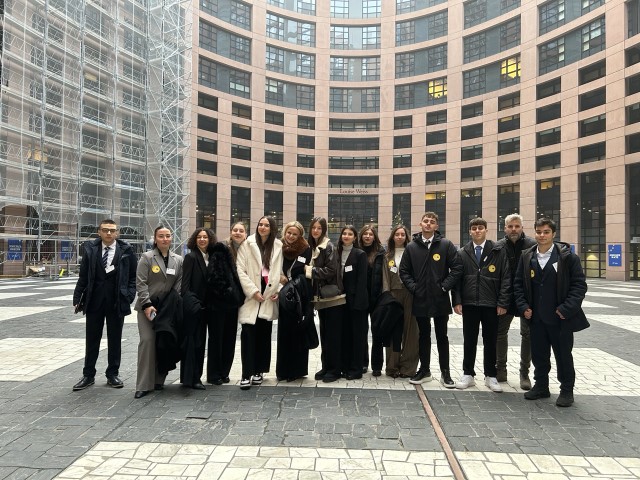 Η συμμετοχή μας στο πρόγραμμα “Σχολεία Πρέσβεις του Ευρωπαϊκού Κοινοβουλίου 2023-24” υπήρξε μια εμπειρία μοναδική και ανεκτίμητη, που μας γέμισε γνώση, συγκινήσεις και αναμνήσεις ζωής. Μετά την εξαιρετική μας επίδοση και τη βαθμολογία 100/100, το βραβείο που κερδίσαμε ήταν η εκπαιδευτική εκδρομή στο Στρασβούργο ώστε να συμμετάσχουμε στις εργασίες της Euroscola, ένα ταξίδι που αναμφίβολα θα αποτελέσει σταθμό στην πορεία μας ως νέων Ευρωπαίων πολίτών. Στο ταξίδι συμμετείχαν όλοι οι Junior Ambassadors του Σχολείου μας Βουλάγκα Φ., Κατσιάβα Α., Κοτρώνη Μ., Κωλέττης Α., Μακρής Ε., Μάνια Γ. – Δ., Μπαλαμίτσα Ι., Μπολομύτης Π., Ντι Τζιαμμαρίνο Μ., Οικονόμου Χ., Πλακιά Α. και Τσαγκούρη Α., από κοινού με τους μαθητές του Μουσικού Σχολείου Λάρισας, οι οποίοι κατέκτησαν επίσης την ίδια υψηλή βαθμολογία. Συνοδοί μας σε αυτό το αξέχαστο ταξίδι ήταν οι καθηγητές μας, κα Ατούν Τζίνα και ο κος Ηλίας Κρούπης, που μας καθοδήγησαν με αφοσίωση και ενθουσιασμό.